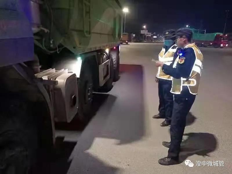加大夜间巡查力度,对渣土车乱倾倒、渣土车滴漏撒等违规现象进行整治并建立专项资料。夜间巡查的脚步不停歇!