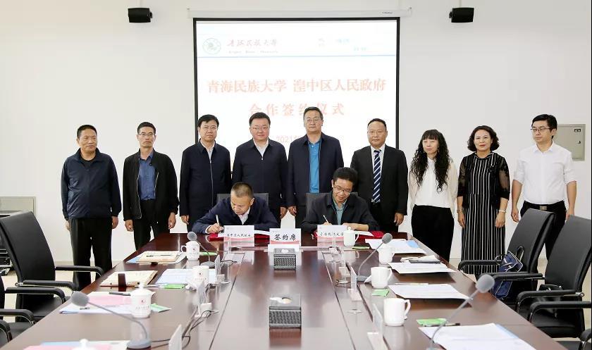 青海民族大学各处室、院系主要负责人,区教育局局长等参加签约仪式。