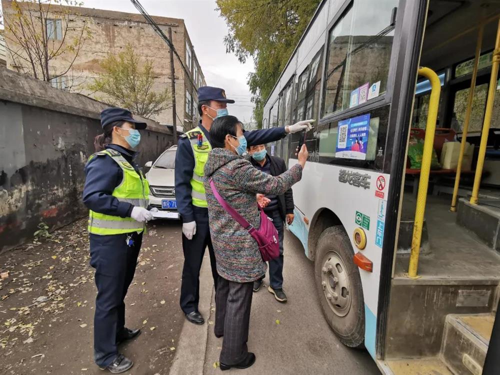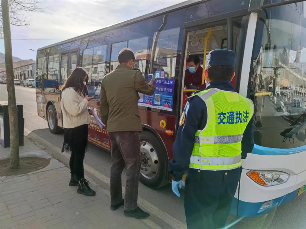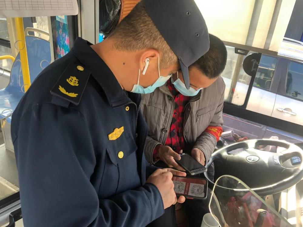 他们提醒乘客佩戴口罩、扫码上车,遇到部分不会使用智能手机的老年人时,就会边做边教,遇到没有扫码功能手机的乘客时,及时嘱咐驾驶员做好详细登记;他们严格监督各车辆按圈次、站场每天3次进行消杀、通风,督促司机每周2次、站场工作人员每周1次定期核酸检测,查出不规范的行为时,及时向公交公司反馈问题,责令立即整改。同时,在上新庄骟马台、西宁西收费站等4个交通要道上,抽调15名执法人员轮班值守,做好过往车辆及司乘人员信息排查登记、"双码"查验、 测温、消杀、应急处置等工作。