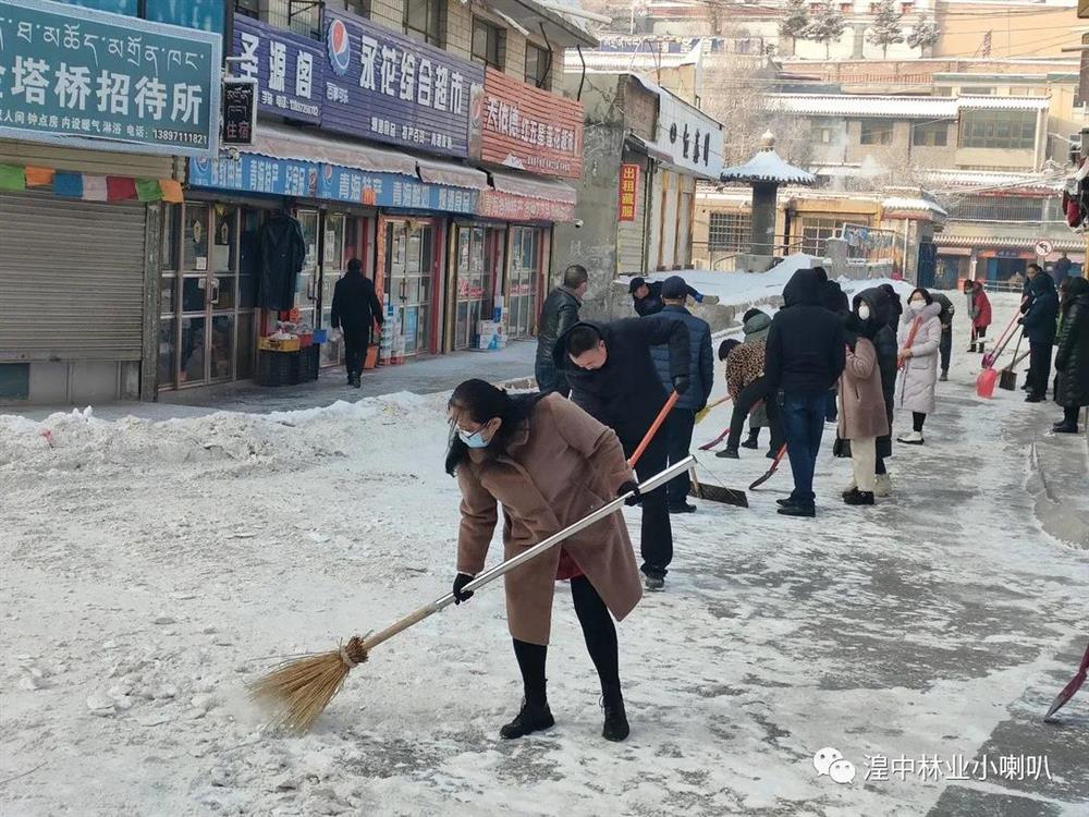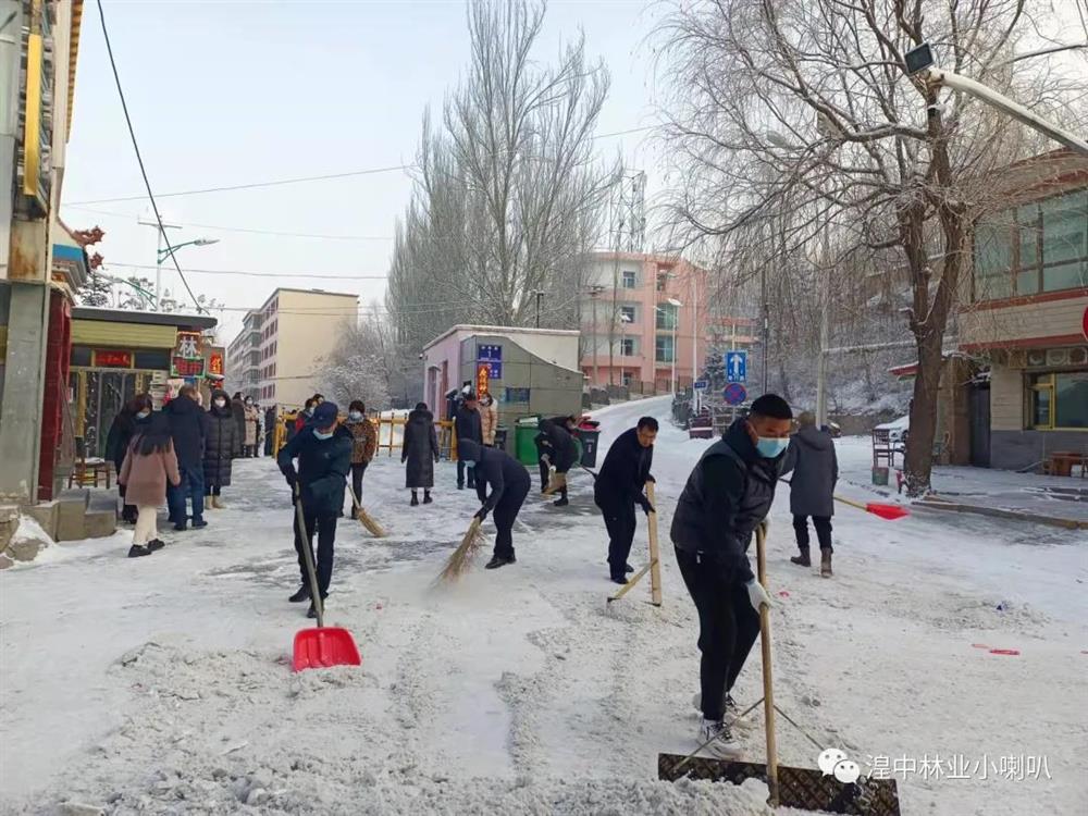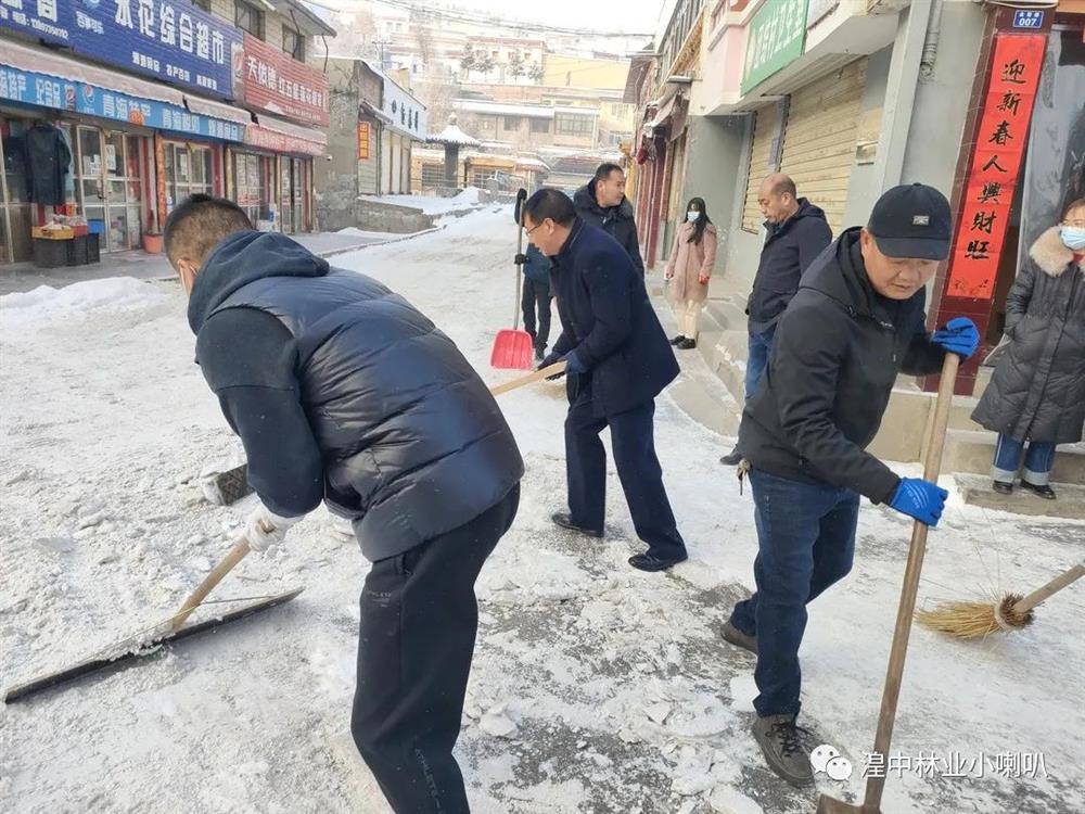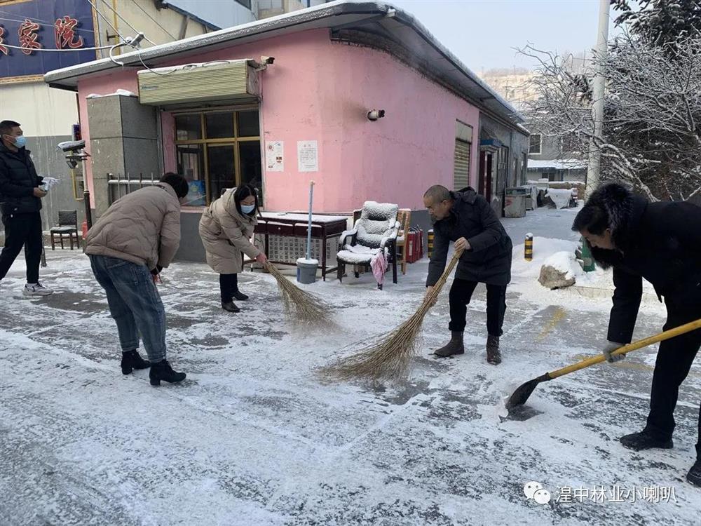 天气虽然寒冷,但在场的干部职工不畏严寒、干劲十足,大家分工明确,配合默契,铲的铲、扫的扫,干的热火朝天,不亦乐乎,忙碌的身影构成了一道亮丽的风景线。