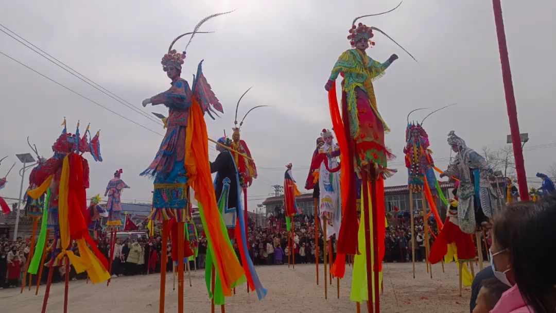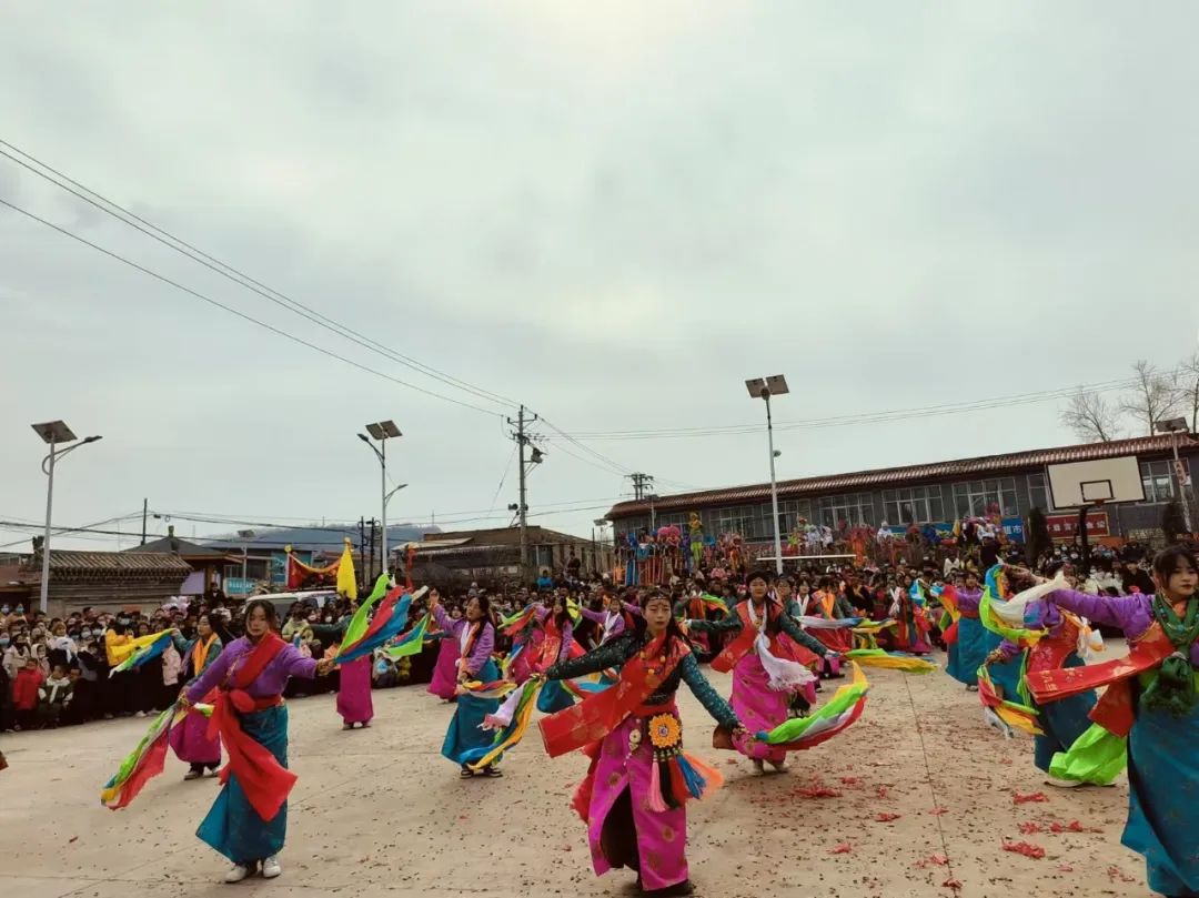 演出以传统的社火表演为主,包括舞龙、高跷、老秧歌等丰富多彩的节目。村民们身着鲜艳的服饰,载歌载舞,展现了浓厚的节日氛围和乡村文化的独特魅力。