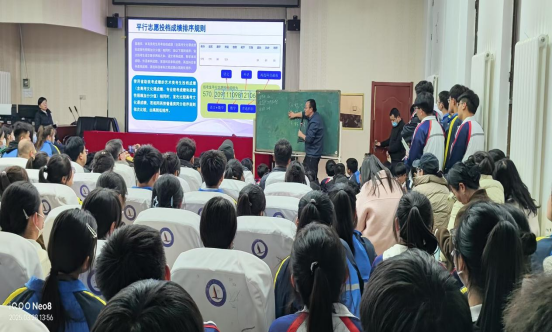精心谋划筹备,提升宣传效果。模拟志愿填报工作启动前,区教育局积极组织全区各高中学校领导、教师及家长参与新高考政策解读与志愿填报培训会,邀请专业教师深入讲解新高考志愿设置模式、录取规则以及选考科目要求等关键要点,提升教师对新政策理解把握能力,为后续指导学生志愿填报做好充分准备。同时,各学校通过校园广播、主题班会、家长群及微信公众号等多元渠道,向考生和家长全面、细致宣传模拟志愿填报时间安排、流程规则、注意事项等重要信息,确保每一位考生和家长都能清楚了解模拟填报相关内容,积极参与此次适应性演练志愿填报。