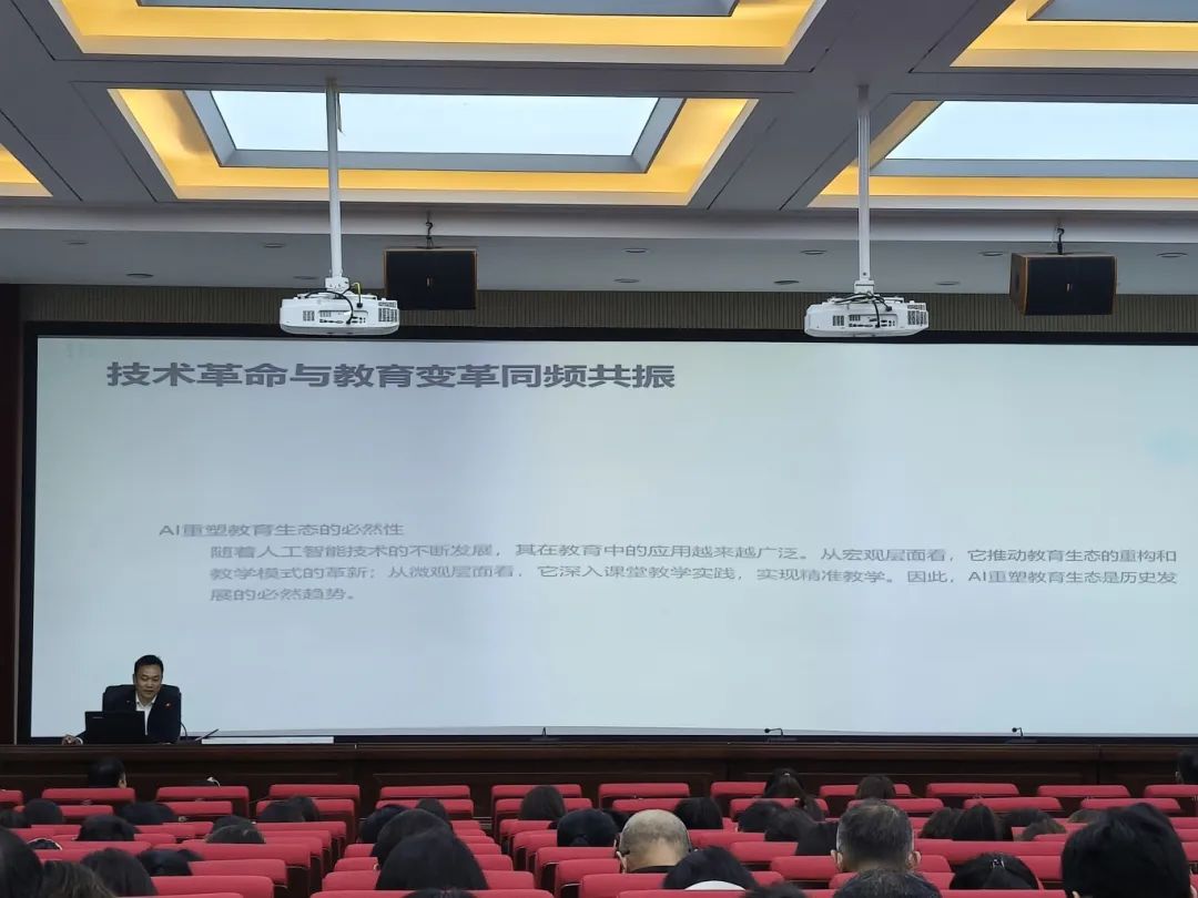 会上,校长何生贵结合全国培训班精神作《人工智能赋能教育现代化:路径与策略》主题动员讲话,提出工作要求:一是学校在高位推进人工智能赋能教育现代化工作中,要坚持“双向融合”发展理念,即“技术赋能课堂”与“教育反哺技术”;即要注重通过AI学情诊断、虚拟协作学习等工具,实现“千人千面”精准教学;又要立足高原教育实际需求,联合企业定制开发藏汉双语AI教学系统,为科技产品研发提供思路和方向;二是在促进教师能力升级上,要深入有效实施“AI教学先锋计划”,分层分类开展包括新手教师“沉浸式支架”学习、年轻教师智能技术整合实践、经验型教师观念革新等内容的教师培训,切实提升教师数字化教学能力和素养。三是注重体现“教育数字化”核心价值,在推动人工智能与教育教学的融合创新实践探究工作中,要努力实现通过AI智能备课、作业批改等方式助力解放教师生产力,通过虚拟实验、个性化推送等方式的运用有效激活课堂活力,通过数字化学情诊断、“一人一策”辅导等技术手段运用实现精准教育,切实发挥数字化技术在教育教学工作中的真正核心价值。四是深刻把握教育本质属性,始终坚持教育过程中“AI是工具,教师是灵魂”定位,全体教师要以开放心态拥抱技术变革,同时坚定守住“眼中有人、心中有爱”的教育初心和情怀,发挥教师在教育中的主导作用。