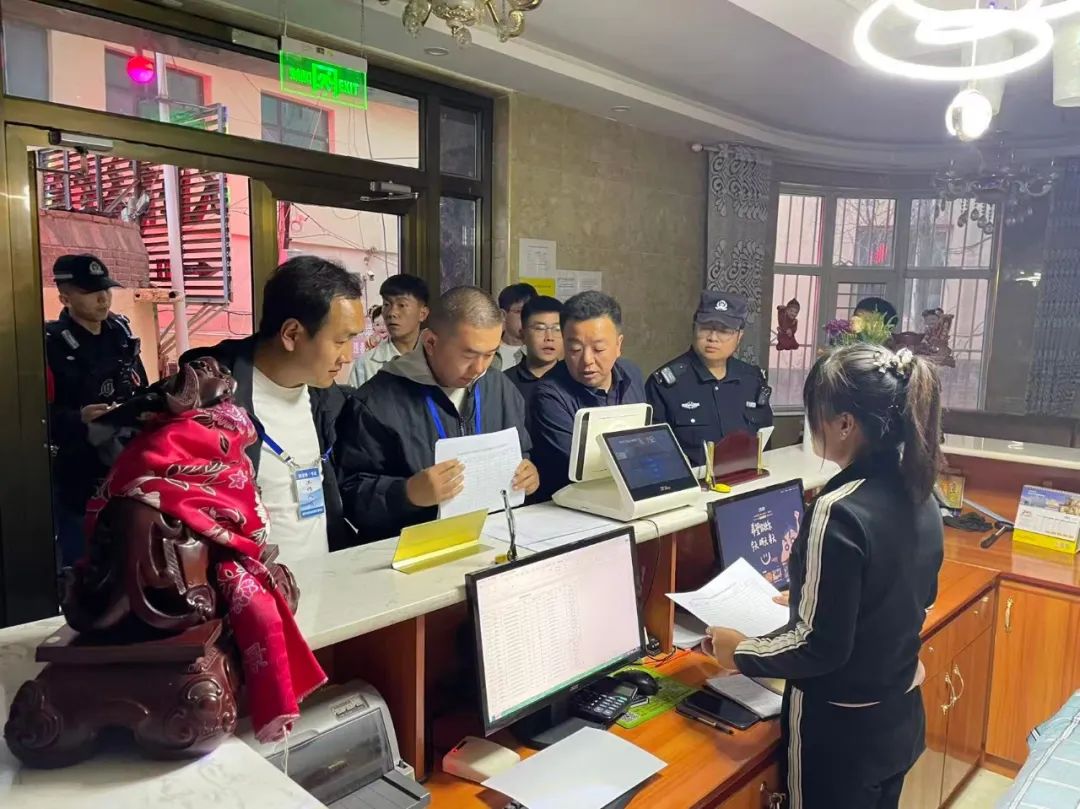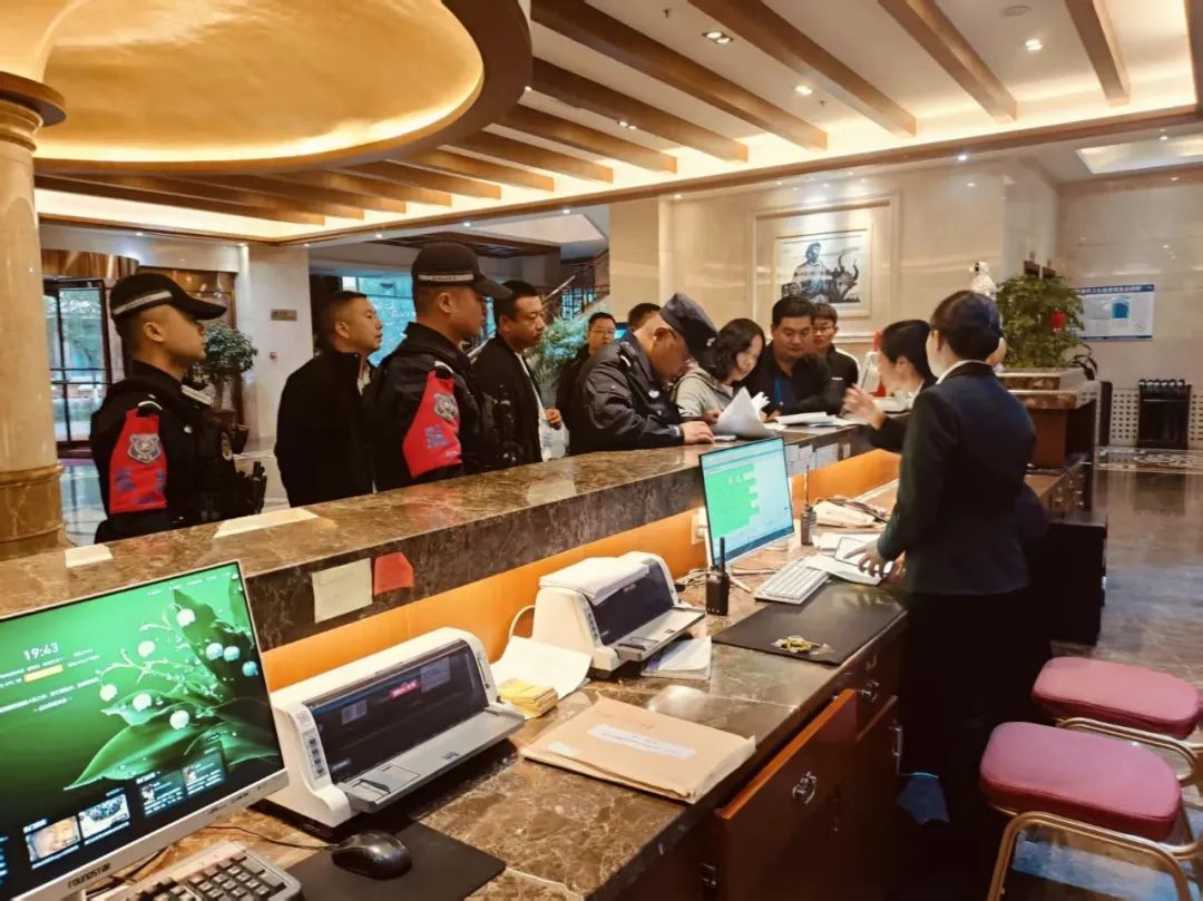 部门联动,开展集中攻坚。由28名公安民警和教育局工作人员组成3个专项检查组,围绕宾馆治安管理等重点安全领域展开拉网式排查。重点核查宾馆监控设备运行状态,确保视频监控存储时长符合标准、覆盖范围无死角;严格落实实名登记制度,运用系统比对、台账核查等手段,保障信息录入准确无误;同步排查宾馆周边治安隐患,对可疑人员和场所实施重点管控,织密安全防护网络。
