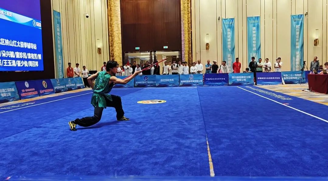 男子青年组传统长器械:在男子青年组传统长器械比赛中,选手们展现出精湛技艺与深厚功底。比赛现场,器械的破空声与选手的发力声交织,营造出紧张激烈的氛围。选手们手持长器械,动作干净利落,气势震撼全场,每一次挥舞都充满力量与美感,将传统长器械的精髓演绎得淋漓尽致。最终,青海昆仑武术院的刘健磊,以8.79分脱颖而出,荣膺冠军。