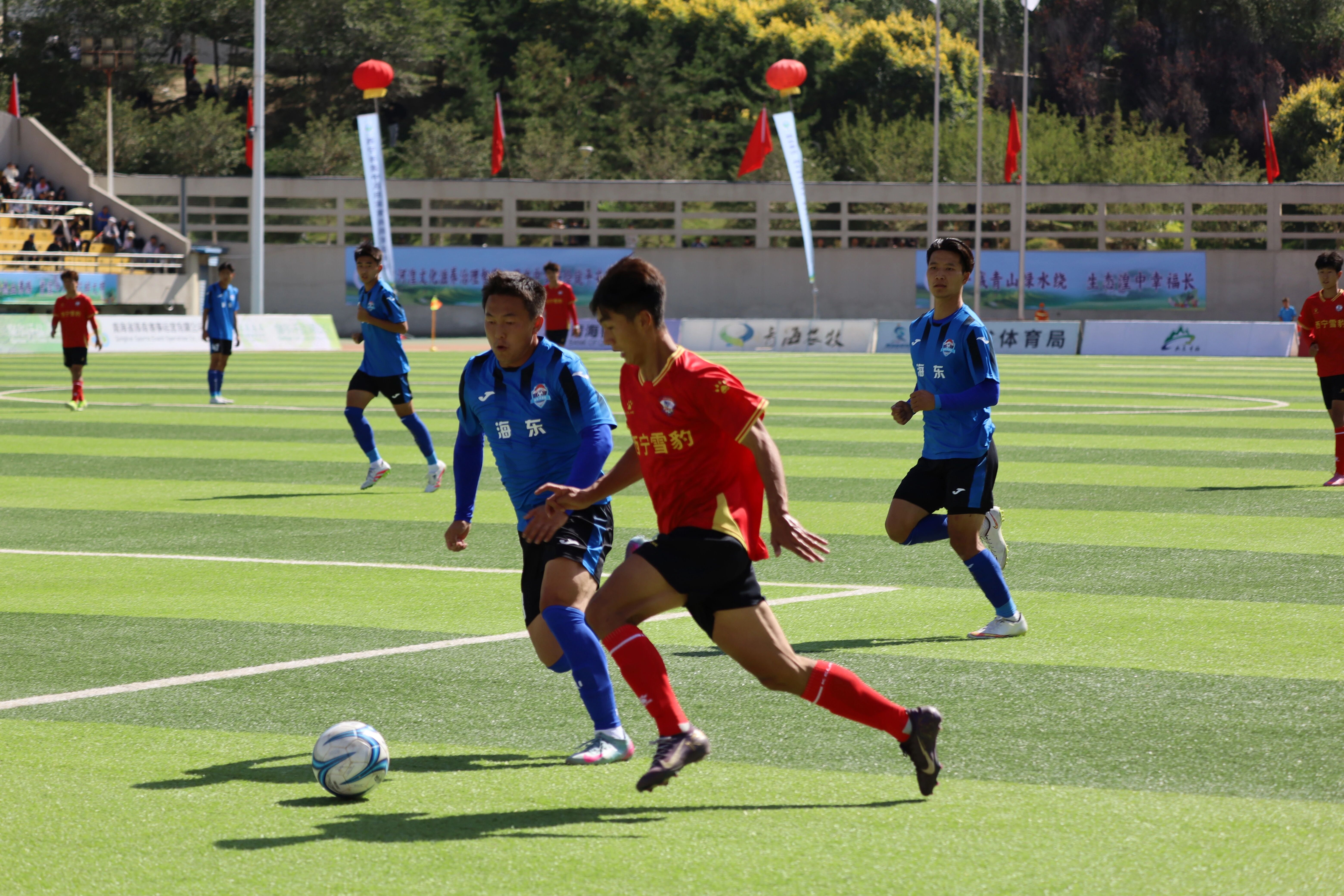 作为湟中主场日活动,当天,西宁雪豹队与海东河湟队展开对决。赛前,由湟中区精心编排的《圣域福谷》《武韵少年》《鎏恋湟中》《歌唱祖国》等文艺节目轮番上演,彰显湟中文化蓬勃活力,传递湟中本土民俗风情,赢得全场阵阵掌声。随着裁判哨响,比赛正式打响,两队球员奋勇拼搏,攻防转换间尽显竞技风采,现场球迷呐喊助威声此起彼伏,赛场周边化作一片热情的海洋。