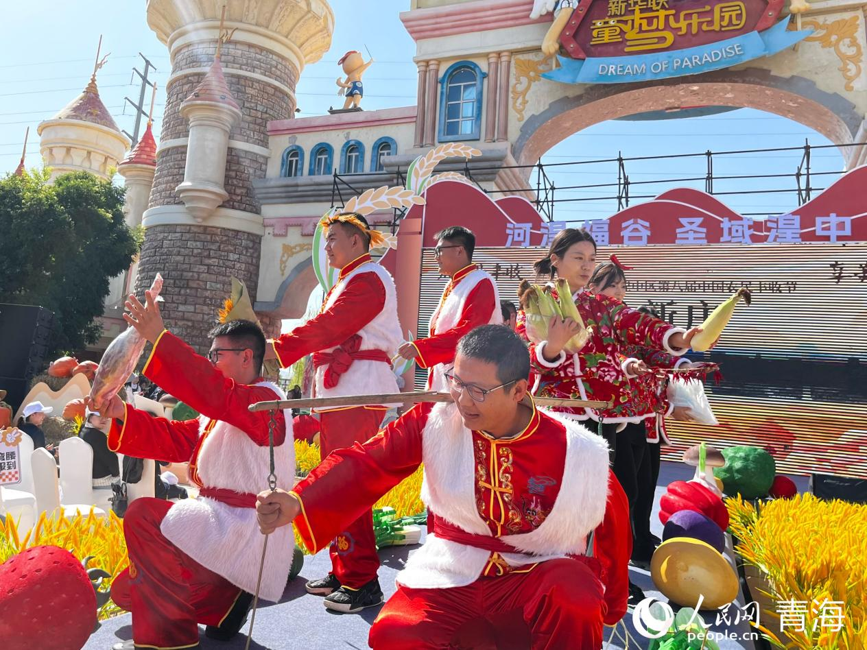 人民网西宁9月24日电(记者甘海琼、实习生马司宇)9月23日,第八届“中国农民丰收节”在西宁新华联童梦乐园圆满落幕。近万名群众齐聚现场,脸上洋溢着笑容,满怀丰收期待而来,满载喜悦与收获而归。