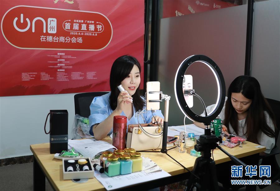 6月6日,广州启动"首届直播节"活动,这是主播在广州市白云区台商分会场直播带货。新华社记者 卢烨 摄