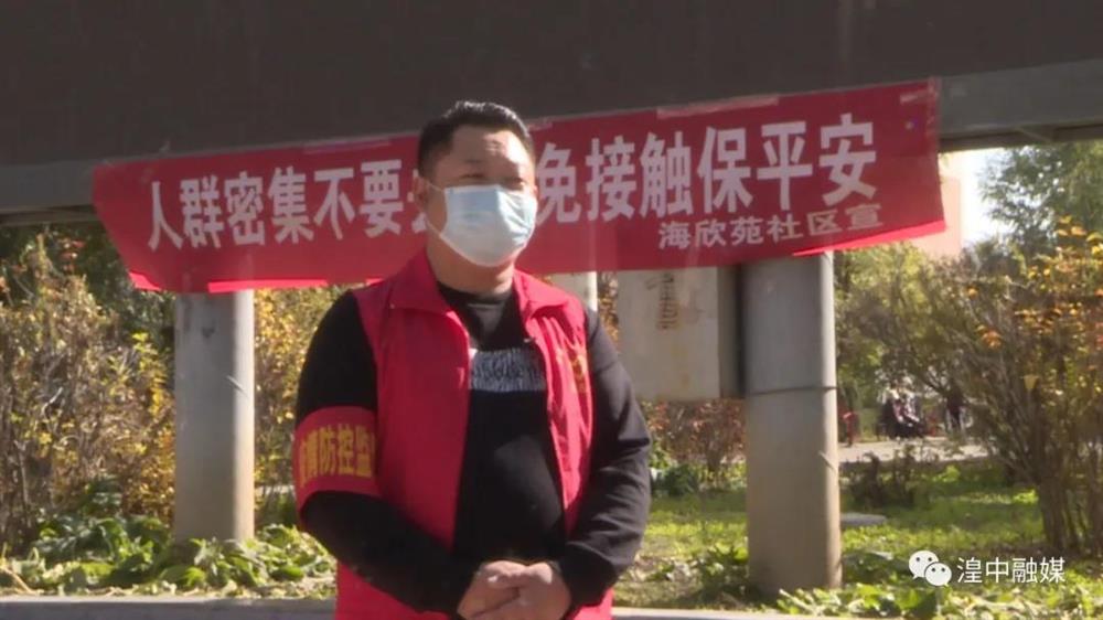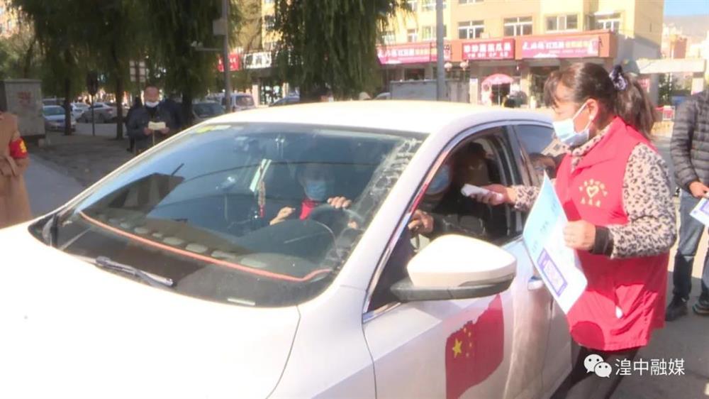 在康川街道办事处海欣苑小区,身穿红马甲的志愿者们还协助小区工作人员为进出车俩进行消毒及人员登记,并入户进行人员排查登记。