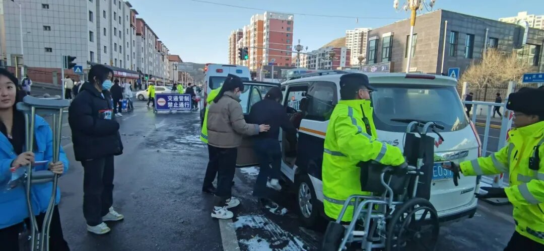 1月4日下午17点左右,我局执法人员在考点执勤时,发现一名刚结束考试的考生独自坐着轮椅走出考场,便立即上前查看,据了解,该考生由于行动不便用轮椅代步参加考试,由于校门口交通管制,家长车辆停靠的地方离校门口较远,了解情况后执法人员搀扶着考生出考场,并用执勤车辆将考生送至家长身边。事后,考生及家长对我局执法人员的热心帮助表示感谢。在本次服务保障工作中,全体执勤人员精神饱满、严格规范、文明执勤,按照既定方案要求准时到岗并开展工作,期间,共出动执法人员36人,执法车辆9台。