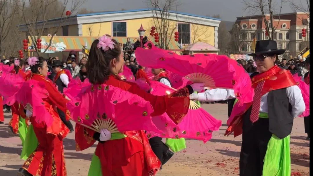 喜庆的秧歌舞蹈表演拉开了活动序幕,演员们身着鲜艳的传统服饰,手持彩绸,步伐轻盈,扭出欢快的节奏。他们的脸上洋溢着灿烂笑容,一招一式都饱含着对美好生活的热爱与期盼。扇子舞表演者们手中的彩扇如花朵般开合,色彩斑斓,在阳光的照耀下熠熠生辉。随着音乐的节奏,扇子整齐舞动,变幻出各种优美的造型,似彩蝶纷飞,又像繁花绽放,将现场气氛推向了高潮。