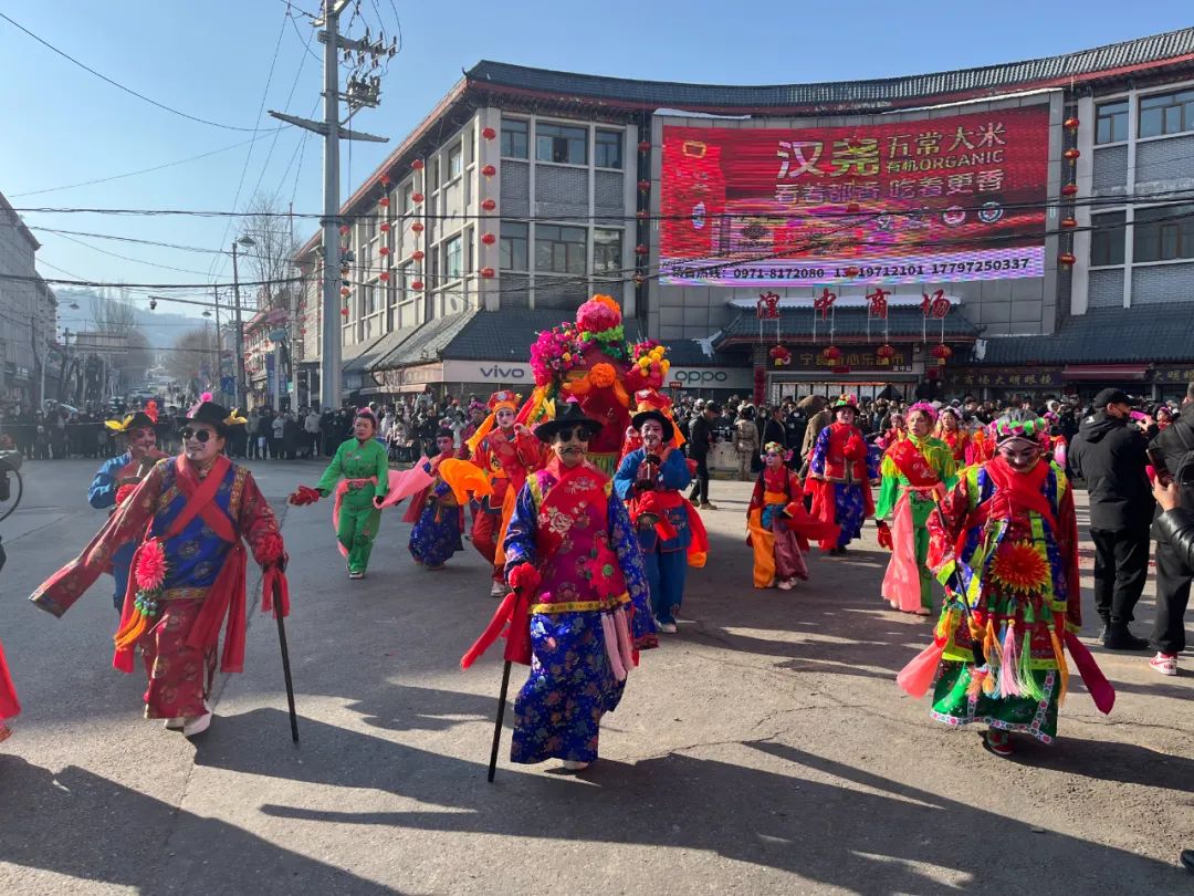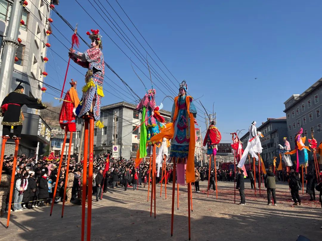 现场热闹非凡,表演队伍各具特色,演员们身着不同的服装、扮演着不同的角色,人们看得眼花缭乱、目不暇接。老秧歌、舞龙、舞狮、旱船、太平鼓、扇子舞、藏舞等等社火表演让现场观众大饱眼福。通过踩高跷、抬花轿、耍狮子等表演,不仅传达着对春节的敬意与热爱,更在潜移默化中弘扬着传统民俗文化。正是在这样的社火表演中,传统与现代交汇,文化的根脉得以延续,成为随时代而发展的生动诠释。