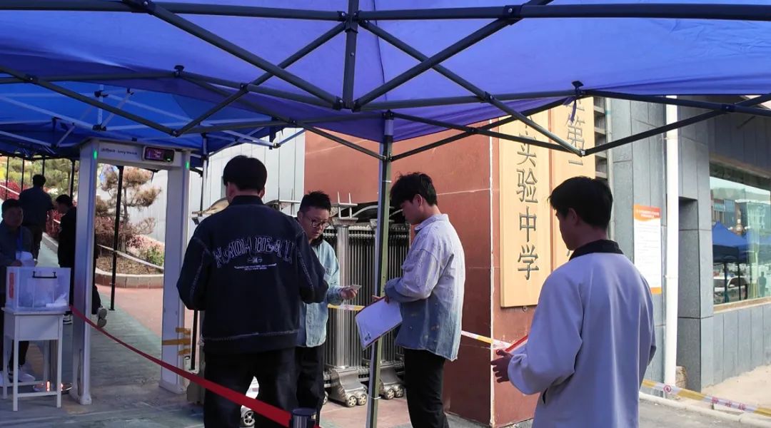 在各考点外,考生们有序排队,等待进入考场。有的考生神情紧张,不时深呼吸调整状态,还抓紧进场前的时间拿出复习资料再看一眼,为首场考试做最后的准备;有的则自信满满,与身旁同学轻声交谈,互相鼓励。家长们站在一旁,眼神中满是关切与期待,不时叮嘱孩子注意考试事项,为孩子加油打气。