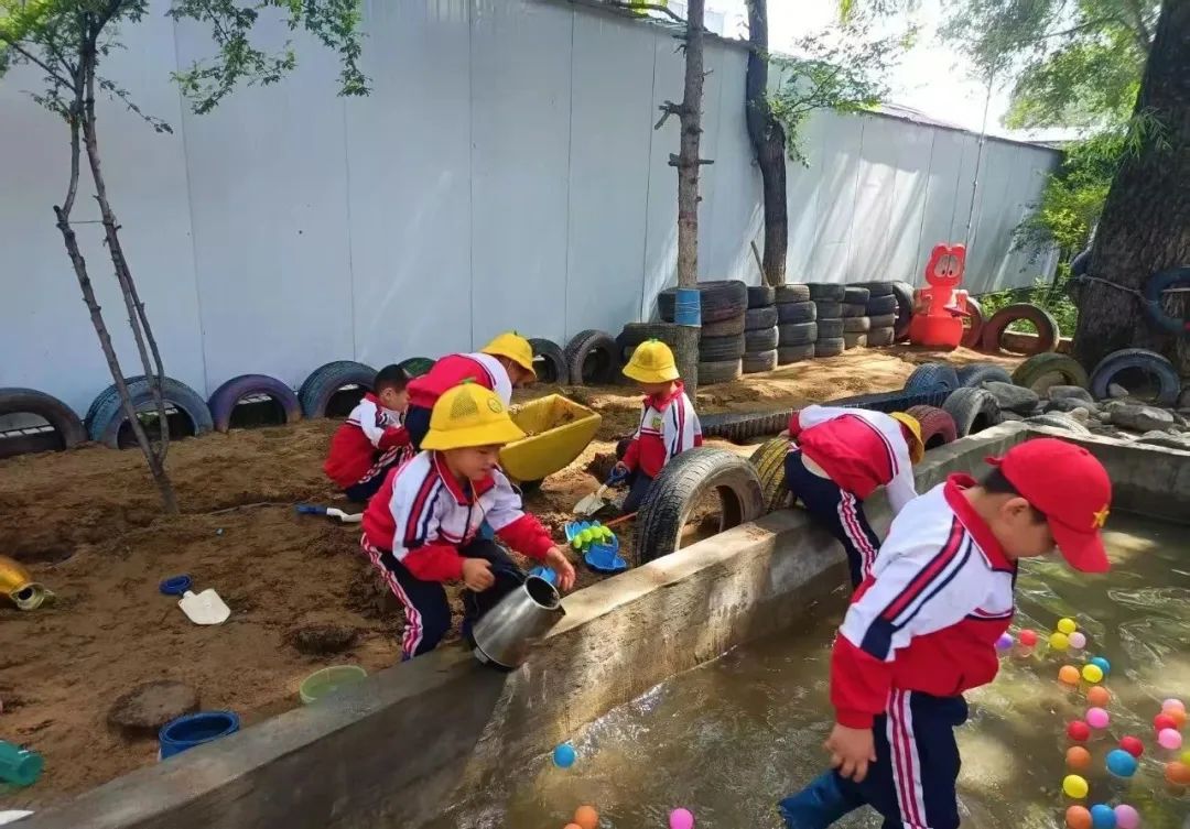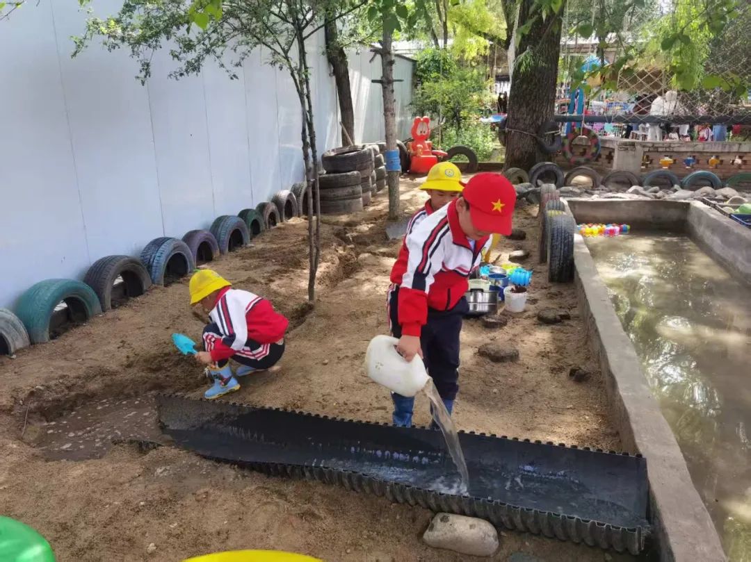 动感有趣的花环操、悦动篮绳团体操拉开了幼儿户外自主游戏活动的序幕。孩子们愉快地奔向自己快乐的小天地。泥巴乐、建构未来、CS对战、绿野拾趣、萌宠乐园、编绣坊、沙水乐园、勇者挑战等区域都能看到孩子们忙碌的身影。他们搬木板、取铲子、捏泥巴、搬砖、和沙水......现场孩子们一个个都全神贯注,仿佛置身于一个充满挑战和乐趣的世界。孩子们的游戏充分体现了将游戏的自主权还给幼儿,让幼儿在自主、自由的真游戏中获得全面发展。