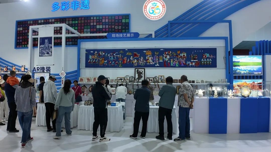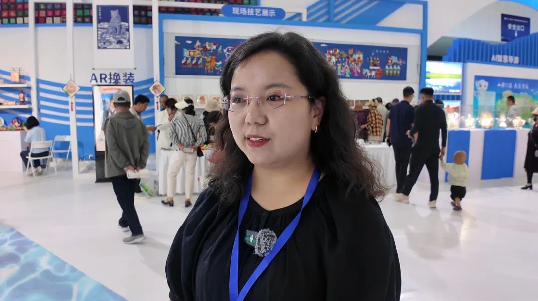 国家级非遗项目湟中堆绣市级代表性传承人柳晴雯说:“我们这次在多彩非遗的板块给大家带来了湟中堆绣的作品,有以往的大作品,也有小的非遗文创产品,还有堆绣的胸针、冰箱贴、耳饰之类的小作品跟大家见面,希望在这个平台上我们的湟中堆绣能够被更多的人看到,能够更多地被推广和宣传。”