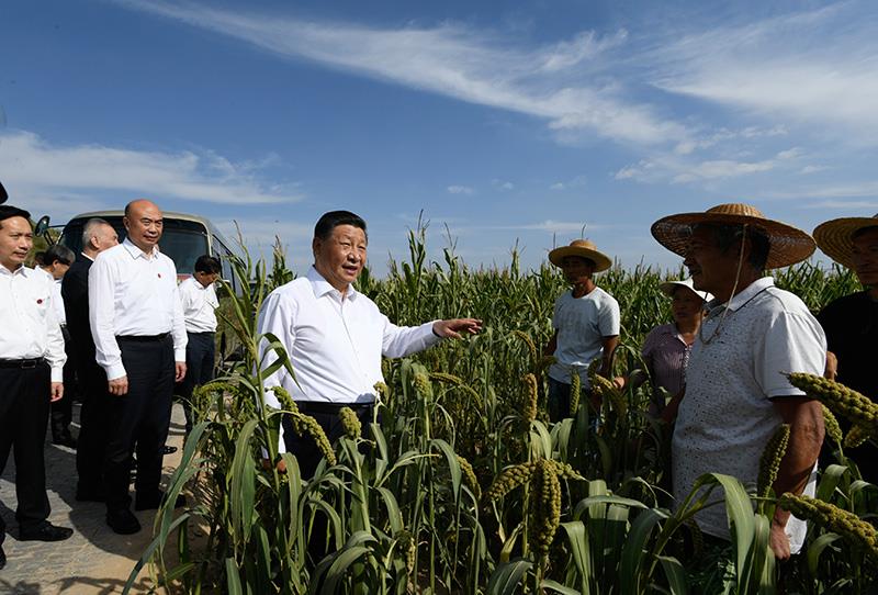 9月13日至14日,中共中央总书记、国家主席、中央军委主席习近平在陕西省榆林市考察。这是13日下午,习近平在米脂县银州街道高西沟村临时下车,察看粮食作物长势,同正在田间劳作的老乡拉家常。新华社记者 李学仁 摄