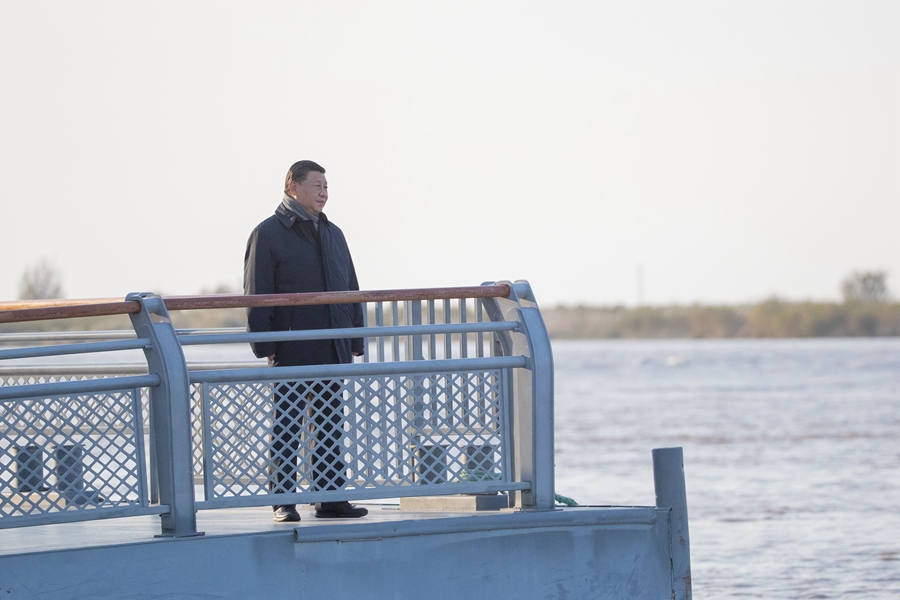 2021年10月,在黄河入海口,总书记沿着木栈道步入湿地深处,实地察看这片动植物的乐园。