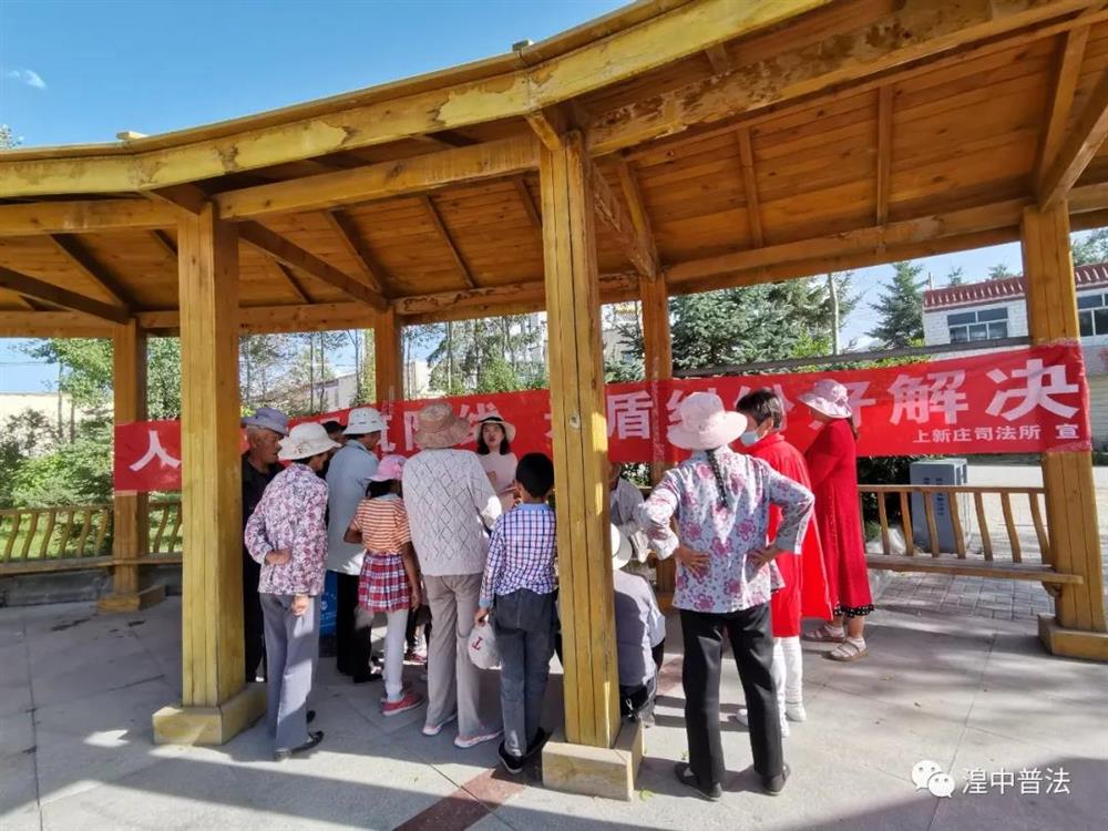 8月13日,上新庄司法所在上新庄村广场开展了以"人民调解筑防线,矛盾纠纷好解决"为主题的《人民调解法》宣传活动,向辖区群众普及人民调解方面的知识,拓展群众维权途径。