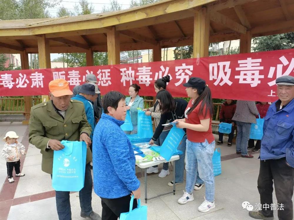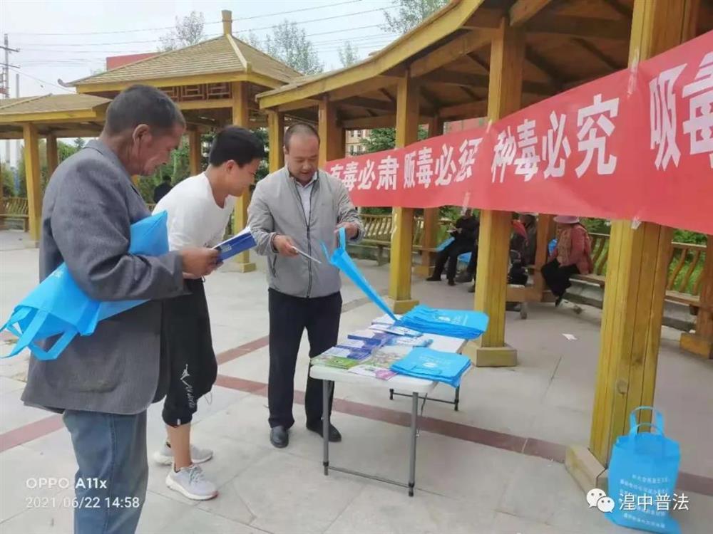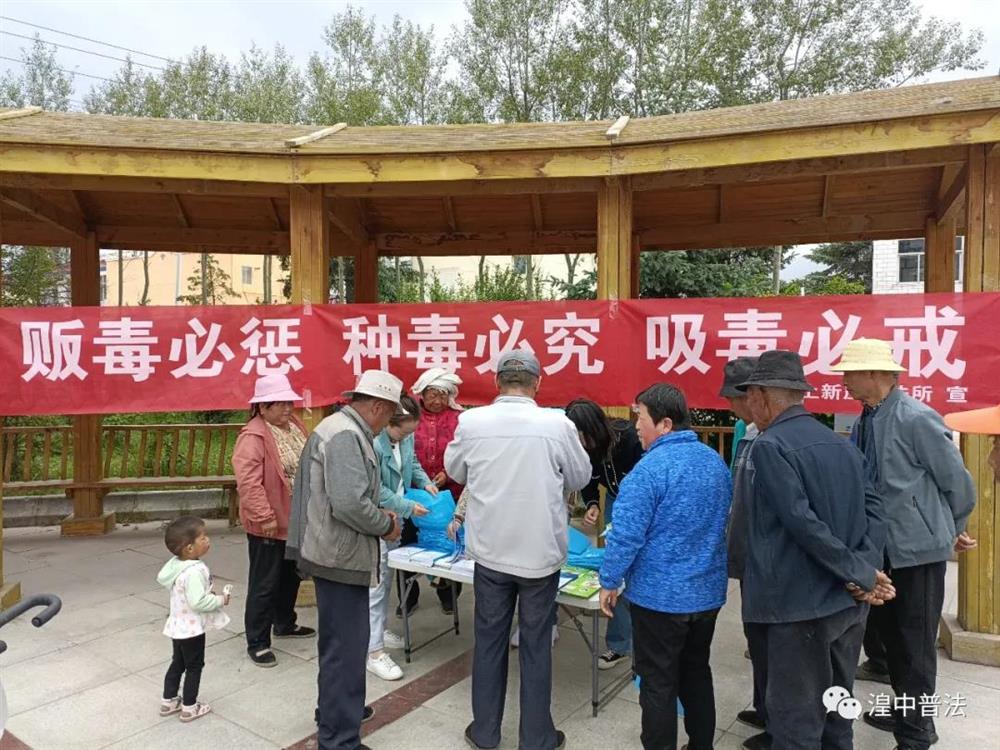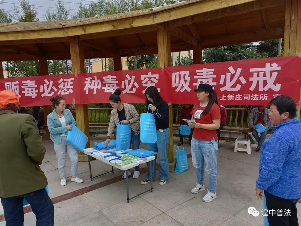在国际禁毒日即将来临之际,为进一步加大辖区内禁毒宣传教育力度,结合好党史学习教育,深化"我为群众办实事"的服务理念,不断推动政法队伍教育整顿走深走实,增强广大人民群众识毒、防毒、拒毒、禁毒意识和能力。6月22日下午,在镇政府的组织下,上新庄司法所会同镇综治办、社区在上新庄村广场开展禁毒的法治宣传活动。