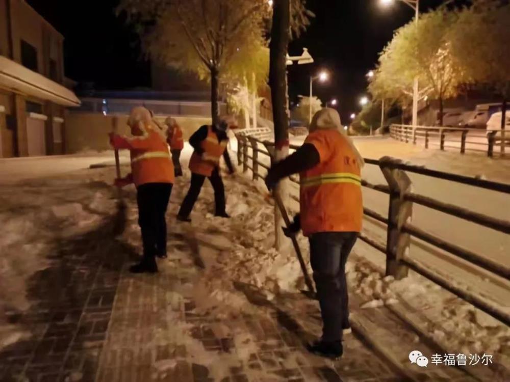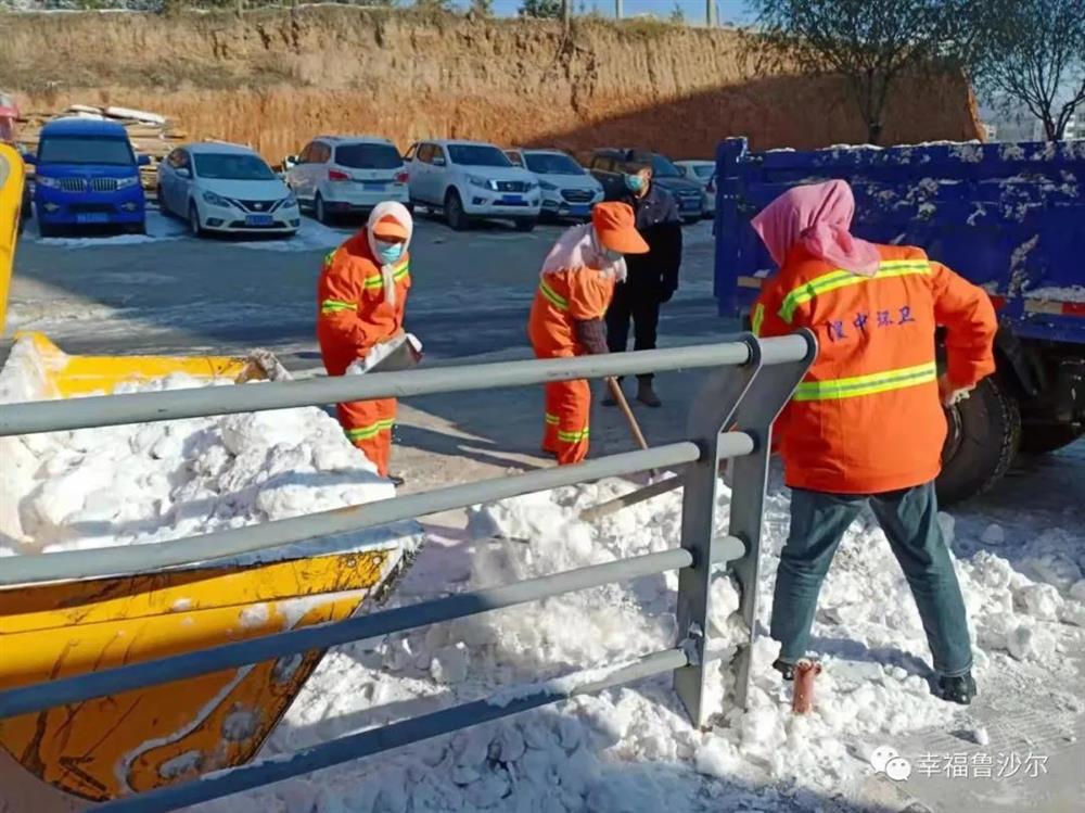 面对风雪,他们坚守在自己的岗位上,坚持清早扫雪、除冰,快速清理城镇主干道、巷道积雪,有效保障道路畅通,及时消除道路隐患,为群众和防疫工作人员提供安全的出行环境。