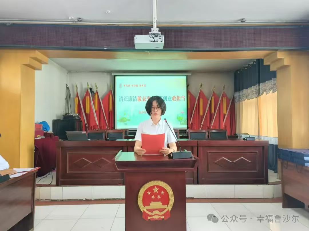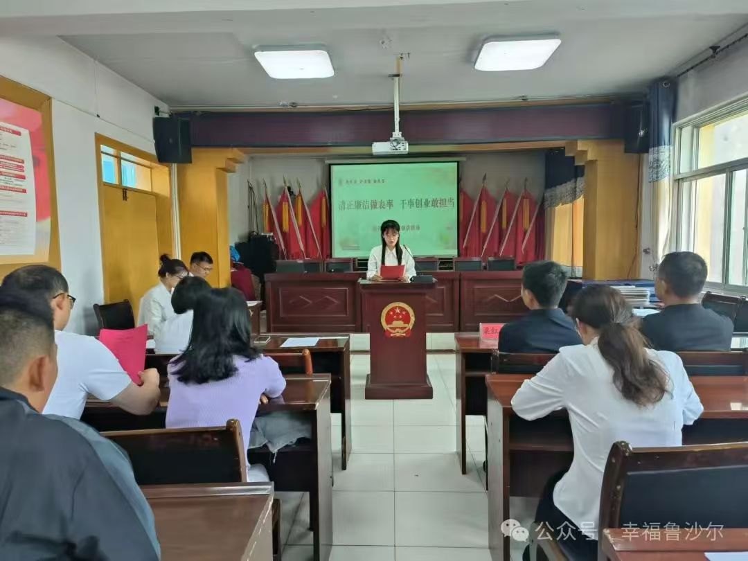 为深入推进新时代廉洁文化建设,持续深化廉洁文化宣传教育活动,进一步巩固提升党纪学习教育成果。8月29日鲁沙尔镇举办了以“清正廉洁做表率 干事创业敢担当”为主题的廉政演讲活动,镇机关集体干部参加,活动由镇纪委书记梁红贤主持。