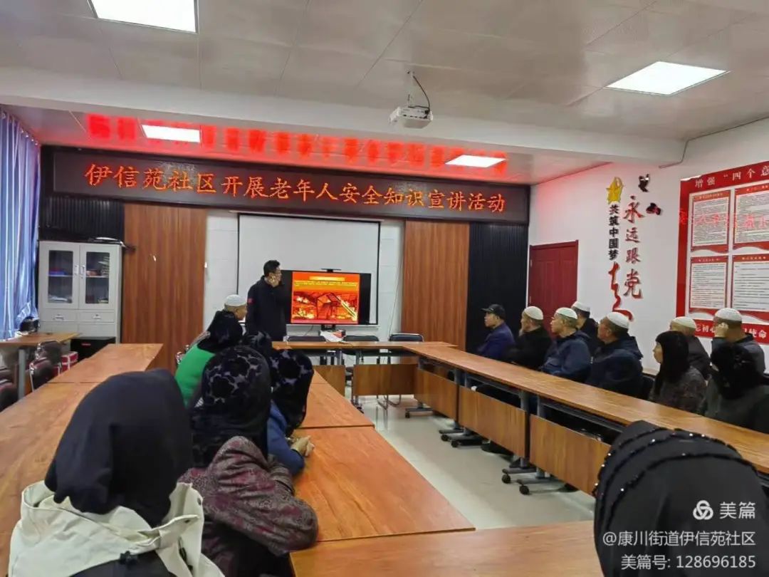 活动二:开展“筑牢老人安全防火墙”消防安全宣传。为提升老年人对火灾安全的认识和应对能力,社区邀请青海新泽安消防公司李老师现场向老年人宣讲了一系列关于火灾事故的案例,详细说明了火灾的危害及其可能的原因,并传授了应对突发火灾的自救求生技巧,增强自我保护意识和能力,从而确保老年人的生命财产安全。