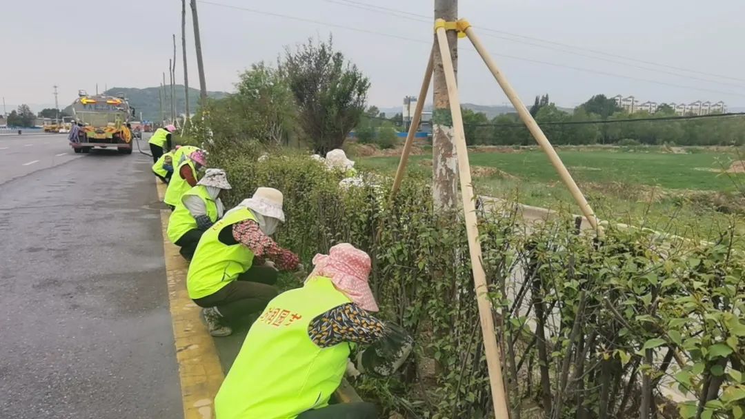 在多巴地区昆仑大道城西村段等区域,绿化养护人员手持绿篱机、大力剪等专业工具对灌木进行精细化整形修剪,对绿地杂草进行清理。针对绿地内杂草生长快的特点,采取人工拔除的方式,进行“地毯式”清理,确保不留死角。