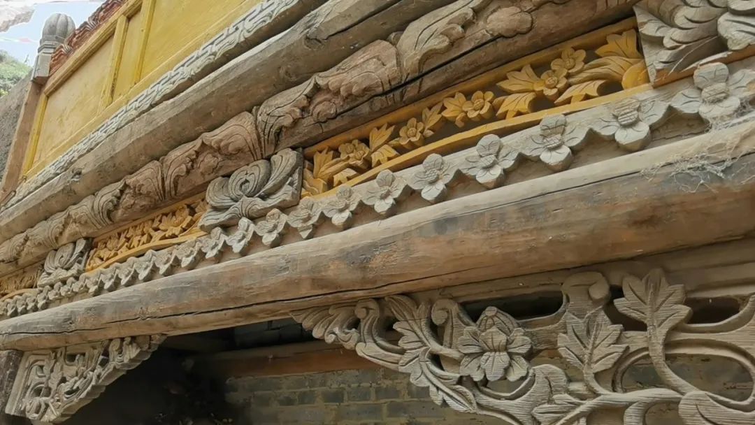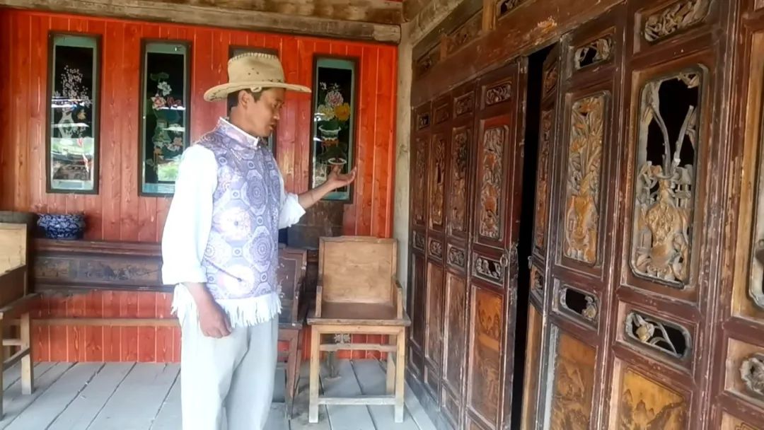 回溯千年,当先民构木为巢时,木结构便成为华夏居住文明的基因。明清时期,为让梁柱更经风雨,匠人们在木构中嵌入石柱,这份智慧如今仍在上红土沟村的老宅里留存。村民扎西才让家的祖传二层木楼,就是活着的历史标本——青灰色的瓦顶勾勒着岁月弧线,雕花木门在开合间发出“吱呀”声,像一首古老的民谣。步入堂屋,厚重的榆木方桌上,油灯、碗碟的痕迹深浅交错,宛如时光拓印的年轮;两把太师椅的靠背雕着如意云纹,被手掌摩挲出琥珀色的光泽,仿佛能触摸到祖辈围坐夜话的温度。老式木柜的彩绘人物虽已模糊,黄铜合页上的绿锈却在讲述着百年开合的故事,柜内飘出的旧布气息,混着卧室里雕花木床的红漆斑驳,共同织就了一幅烟火人间的立体画卷。
