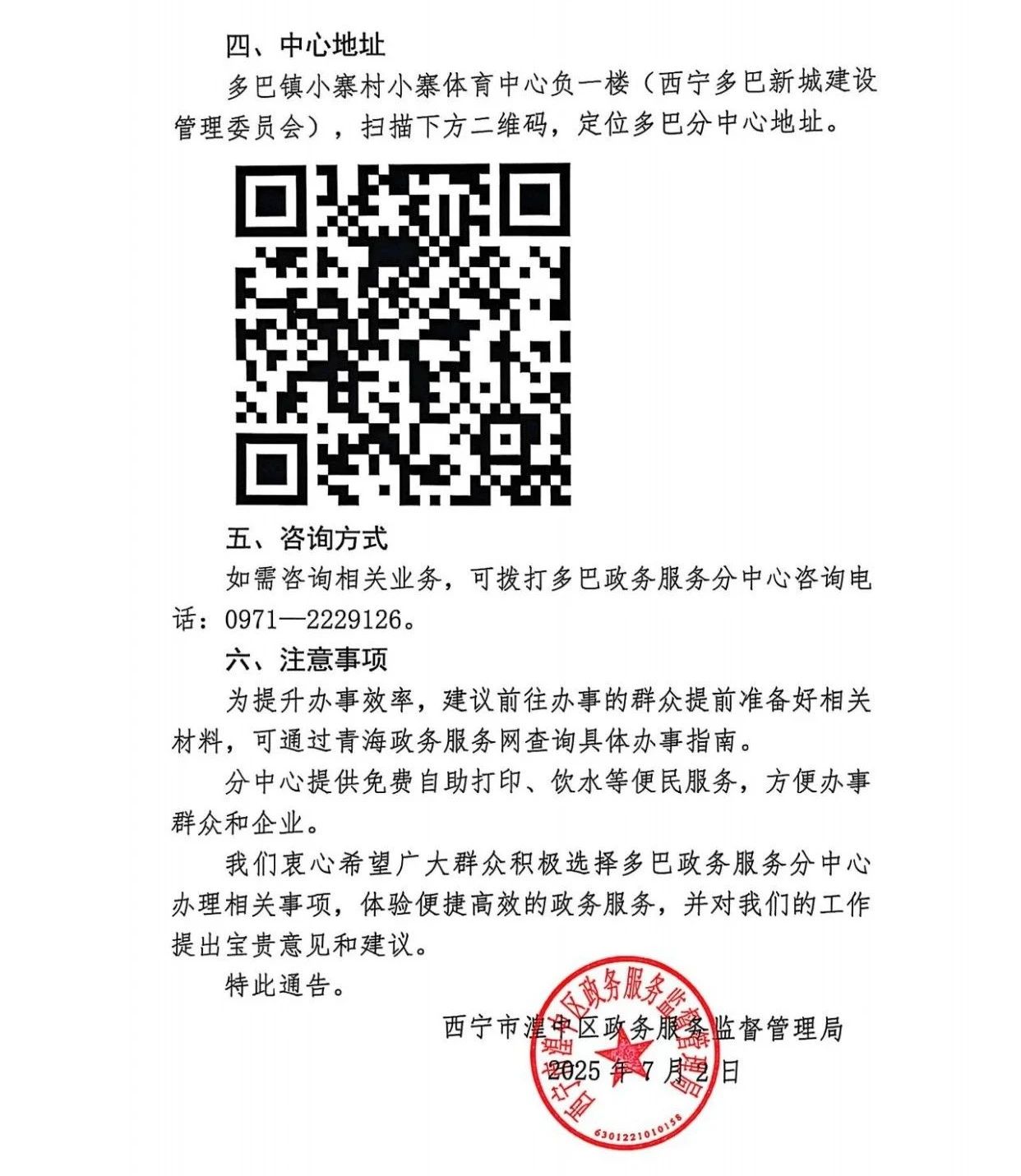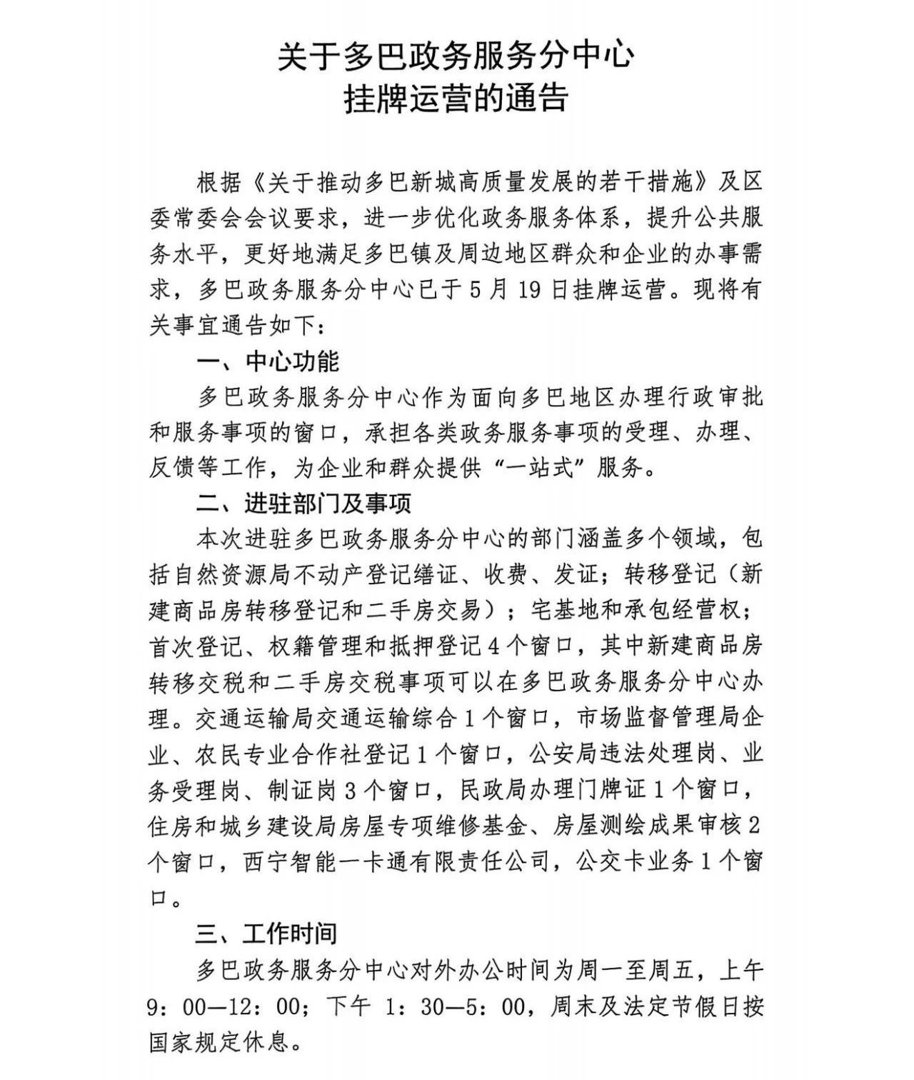 【政务服务】关于多巴政务服务分中心挂牌运营的通告