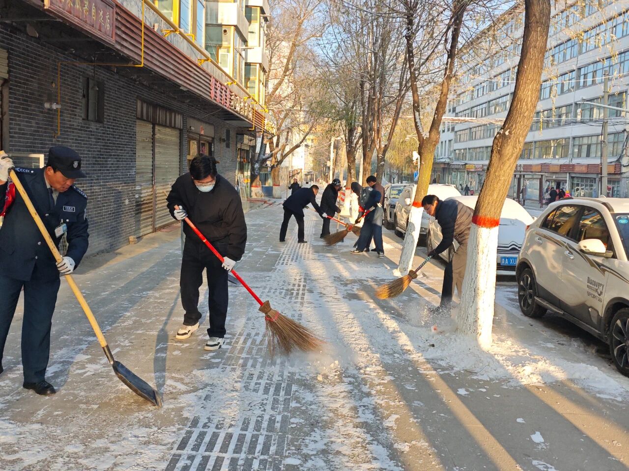 与此同时,“自扫门前雪”成为城市一道亮丽风景线。各沿街机关单位、企业商户、社区居民自发行动,纷纷拿起扫帚、铁锹,清扫门前及周边人行道的积雪,铲除结冰。大家相互配合、齐心协力,用实际行动打通出行“最后一米”,既方便了自身和他人通行,也为全区除雪保畅工作减轻了压力,形成了“部门主力攻坚、全民协同参与”的良好局面。