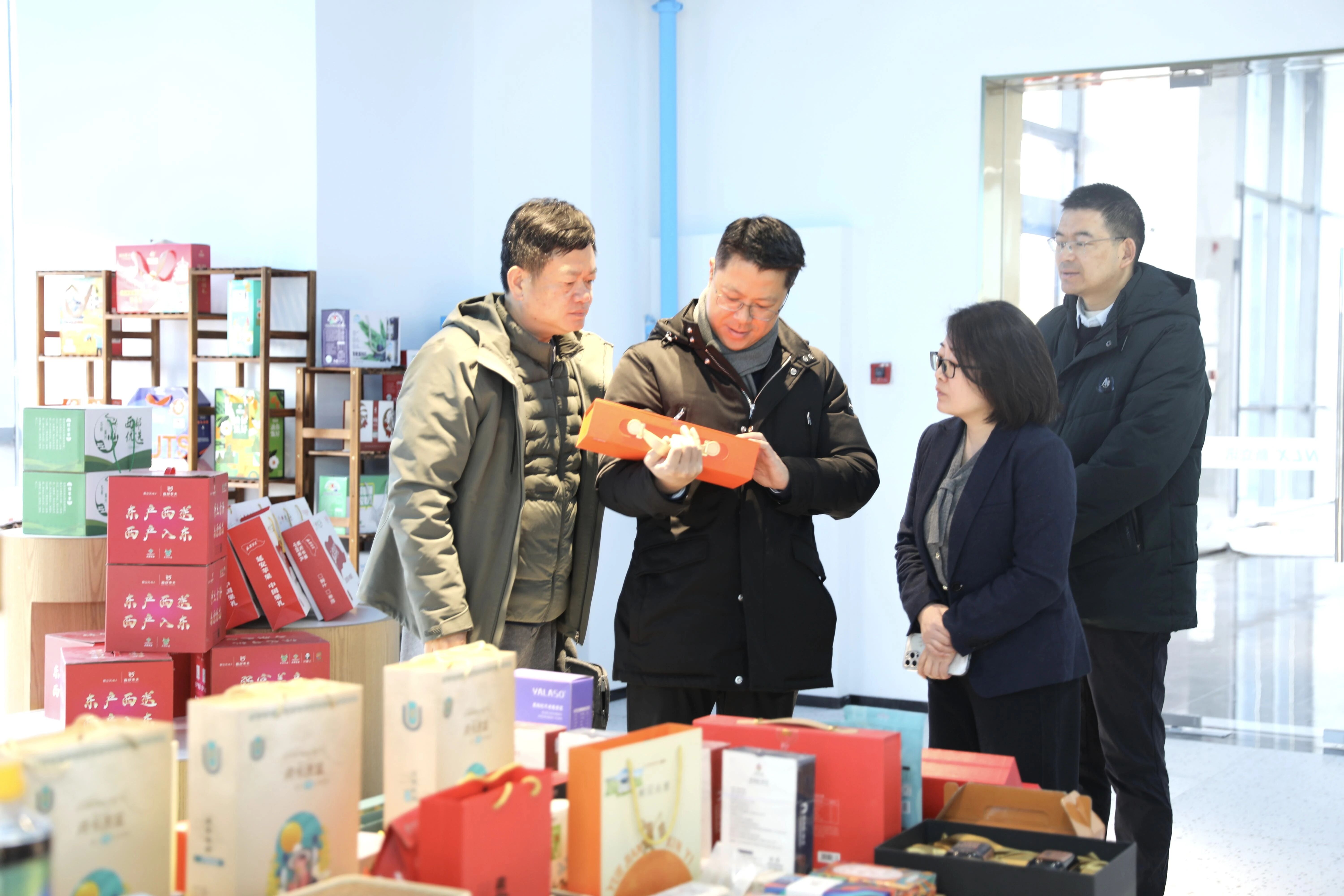 调研期间,华巍一行实地考察了位于新立讯总部一层的“东西部(苏青)协作农产品展销中心”筹建现场。该中心分为青海农特产品展销厅与非遗文创(手工艺品)展销厅两大功能区域,集中展示了蓝雀山系列、羊羔花产品、高原牦牛肉、藏羊肉、湟鱼菜籽油、雪山牦牛奶等“青品好物+西部优选”特色农产品,全方位呈现青海生态禀赋与产业优势。