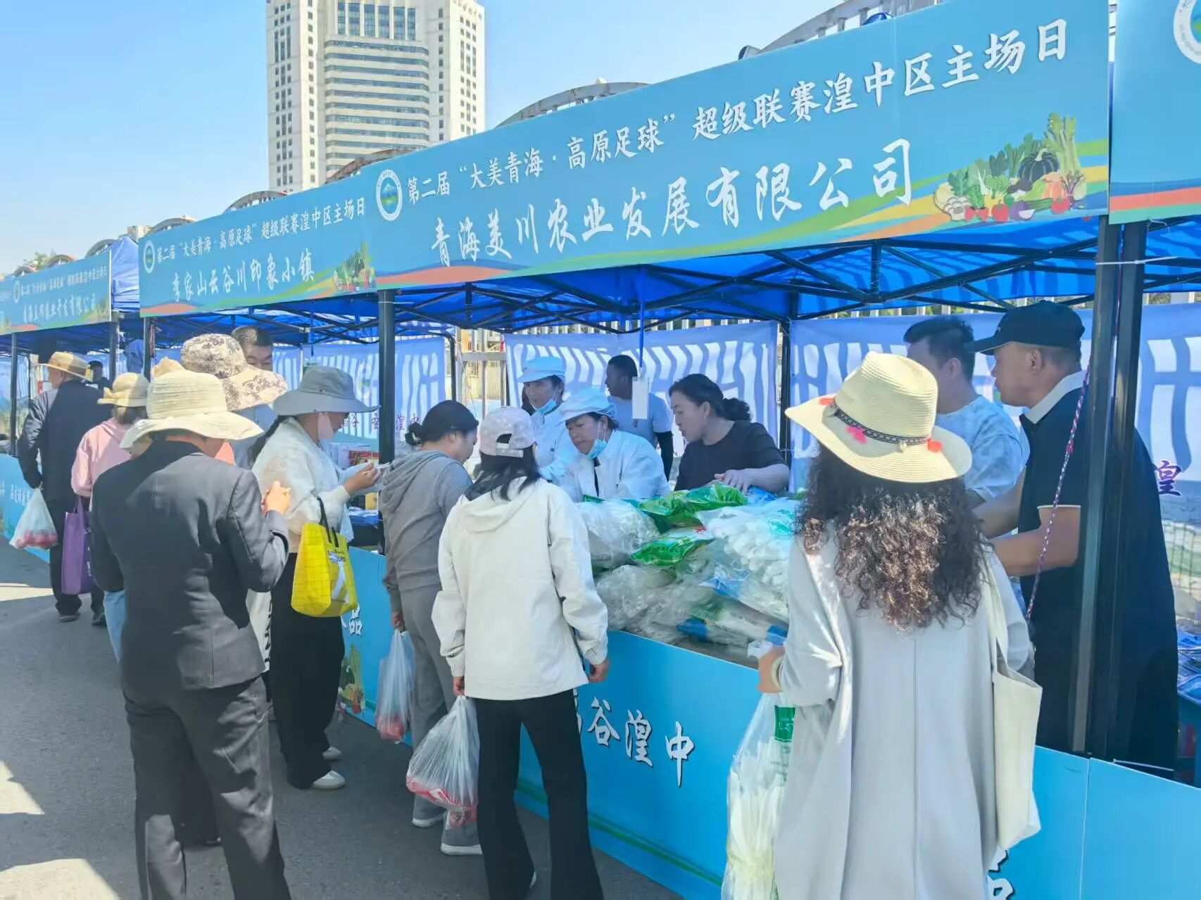 与此同时,体育场周边的配套活动同样热闹非凡。农特产品展销区里,100家参展企业带来60余种特色产品,湟中高原冷凉蔬菜、西堡夏季草莓、风味酸奶等本土好物琳琅满目,中药饮品品尝、中藏医问诊等活动更添民生温度;非遗展示区中,青绣的细腻针脚、皮影的灵动造型、银铜器制作及鎏金技艺,让游客近距离触摸湟中非遗的传承脉络;线上线下宣传推介同步发力,直播带货展位前主播热情讲解,将湟中特色产品通过云端推向全国。