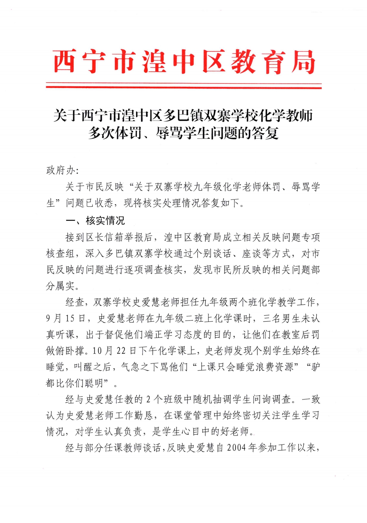 关于双寨学校九年级化学老师体罚、辱骂学生的匿名举报信 尊敬的学校领导/教育监管部门: 您好!我是双寨学校的一名学生(为保护自身安全,特此匿名举报),现向您实名反映我校九年级化学老师在教学过程中存在的严重不当行为,该行为已对学生身心造成不良影响,具体情况如下: 该化学老师多次在课堂上,因学生出现上课睡觉的情况,采取了不符合教育规范的处理方式。一方面,存在体罚行为,曾直接用教鞭或者橡皮手掌抽打睡觉学生的手掌,或要求学生在教室后排做俯卧撑,期间不允许喝水 另一方面,伴随严重的言语辱骂与阴阳怪气,例如当众斥责学生“上课只会睡觉浪费资源”“驴都比你们聪明等”,还会用“某些人活着就是给班级拖后腿”等讽刺性语言对学生进行人身攻击,并且次数较为频繁 希望严查 此类行为不仅违背了教师教书育人的基本准则,更严重伤害了学生的自尊心,导致部分学生对化学学科产生恐惧心理,甚至不敢正常参与课堂互动,严重影响了班级的学习氛围与学生的心理健康。 恳请相关部门能对此事进行严肃调查核实,制止该老师的不当教育行为,并采取有效措施保障学生的合法权益与身心健康,营造安全、尊重的校园学习环境。 举报人:匿名学生 日期:2025年10月28日