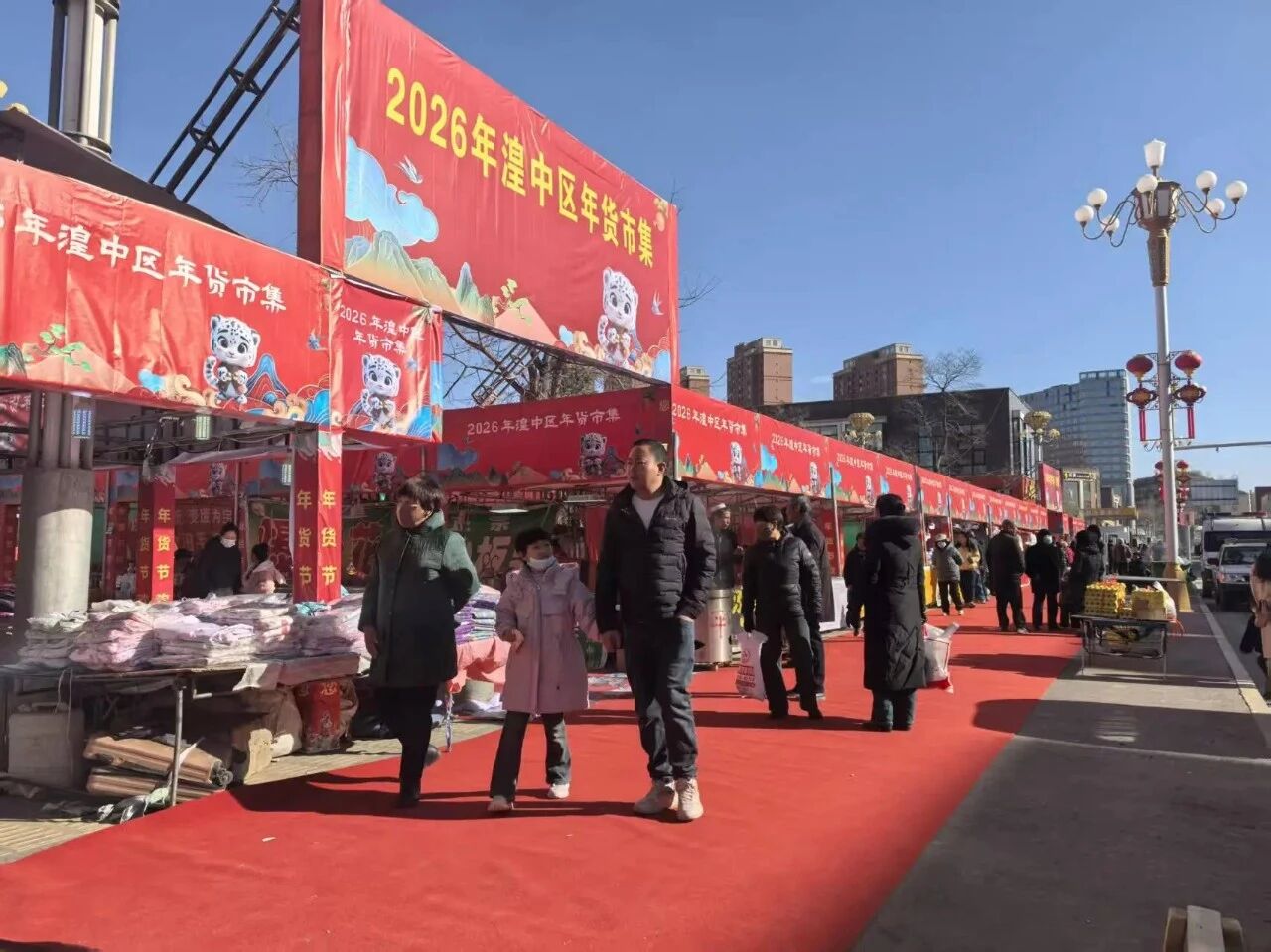 除了商超,鲁沙尔镇的年货市集也热闹非凡,为市民打造了一个集购物、美食、文化体验与便民服务于一体的综合性新春平台。市集内摊位整齐排列,商品琳琅满目,从干果炒货、糖果糕点,到特色酸奶甜醅,再到精致的餐具茶具与舒适的家纺床品,丰富多样的商品全面满足了市民辞旧迎新、置办年货的实际需求。