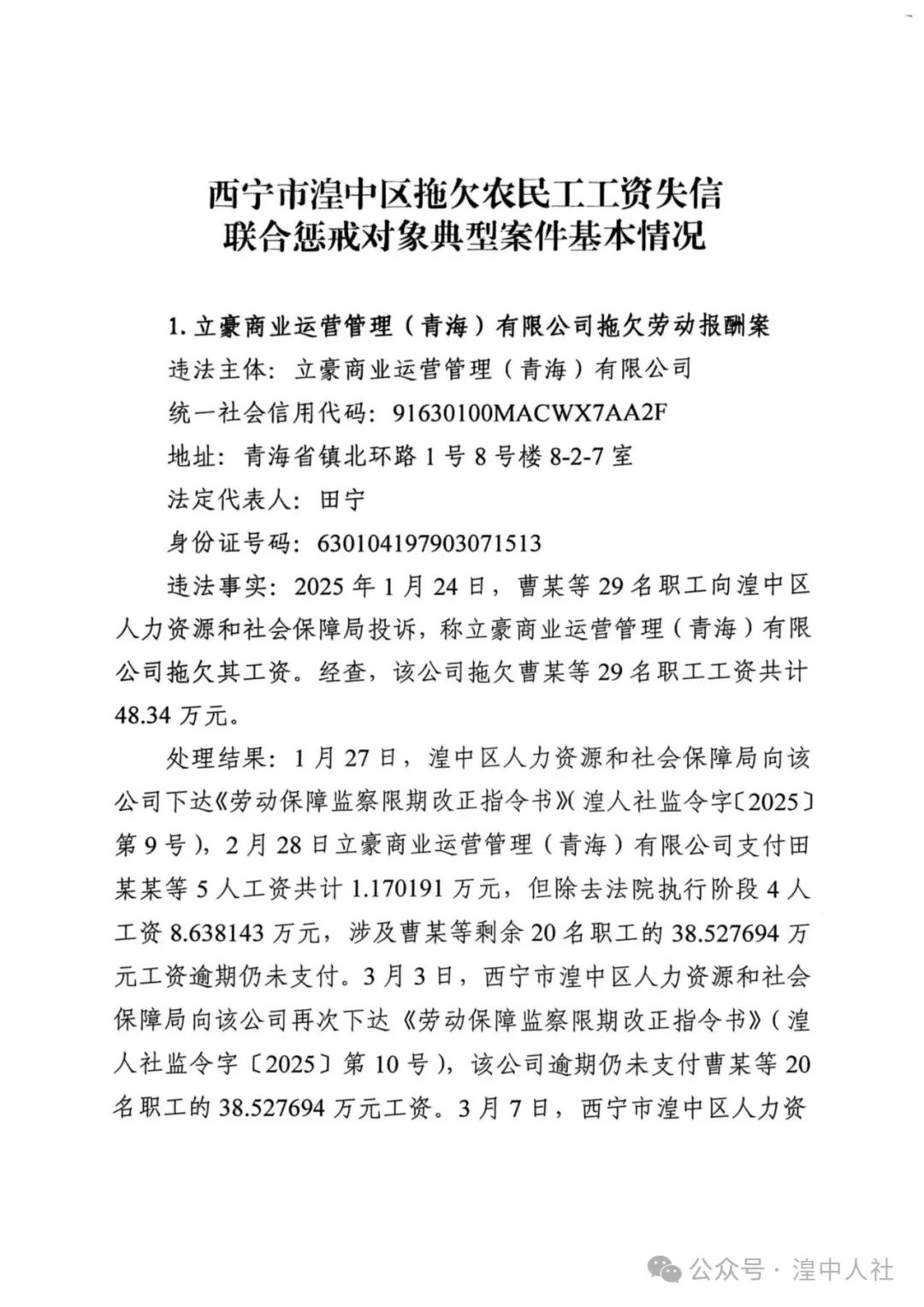 关于拖欠农民工工资失信联合惩戒对象名单的公示