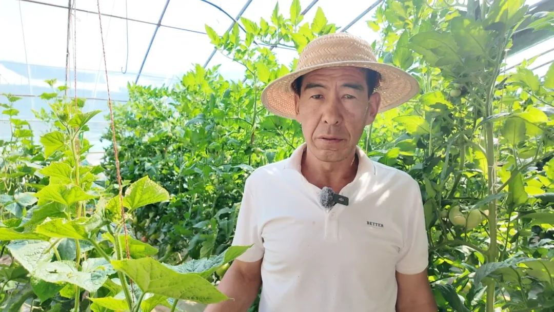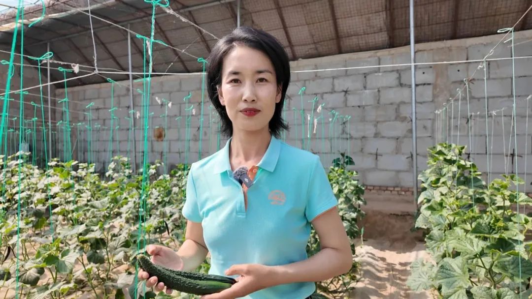 “大家看,我手里的黄瓜新鲜脆嫩,这都是农场温室里种植的无公害蔬果。这里共有13座大棚,种着黄瓜、西红柿、西瓜、菠菜等多种作物。值得一提的是,种植产生的秸秆、边角料,会被运到养殖区当作饲料,形成了‘种养循环’的绿色生态模式。”记者莫维霞手持新鲜黄瓜,站在温室大棚内介绍。