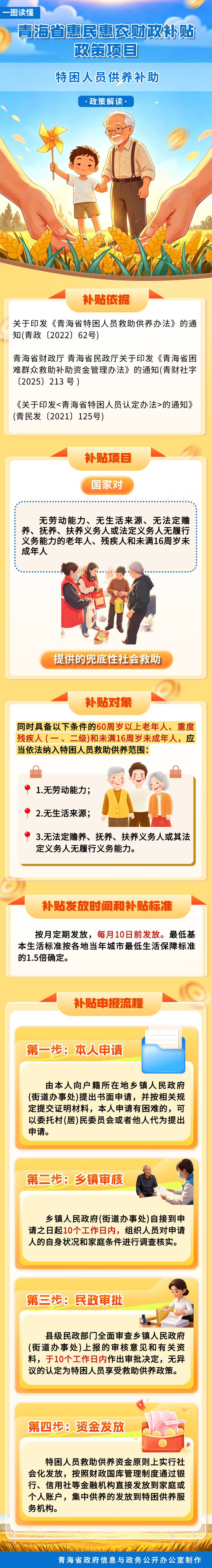 青海省惠民惠农财政补贴政策项目之【特困人员供养补助】