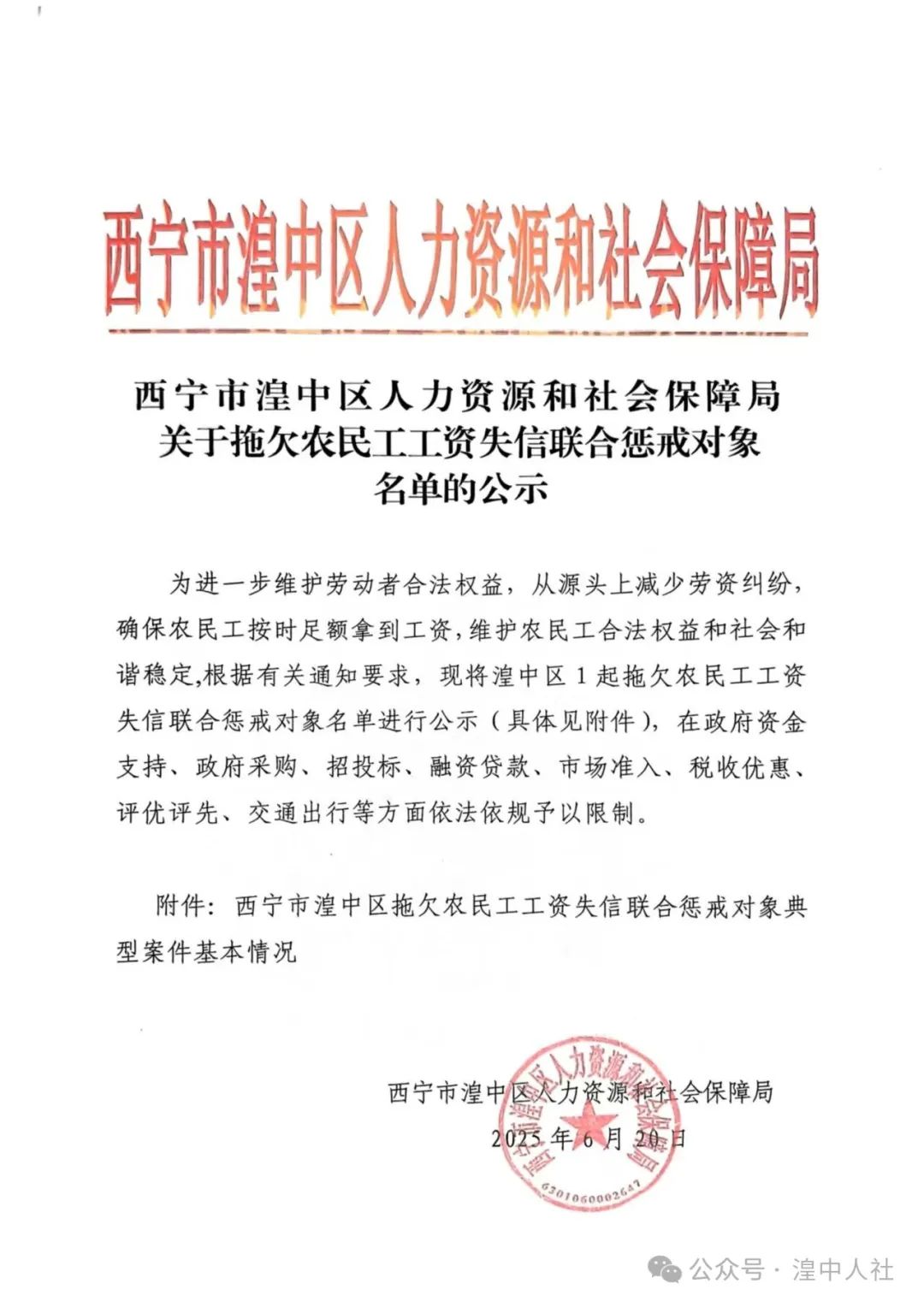 关于拖欠农民工工资失信联合惩戒对象名单的公示