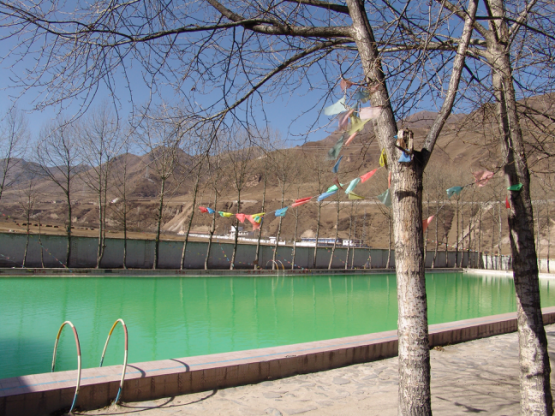 上新庄药水滩位于拉脊山下,西久公路横穿而过,距县城鲁沙尔15公里,距西宁市区32公里,海拔2700米,四周群山环抱,景色明媚,风光独特。因药水滩"神泉"、"神水"的温泉而闻名于世。