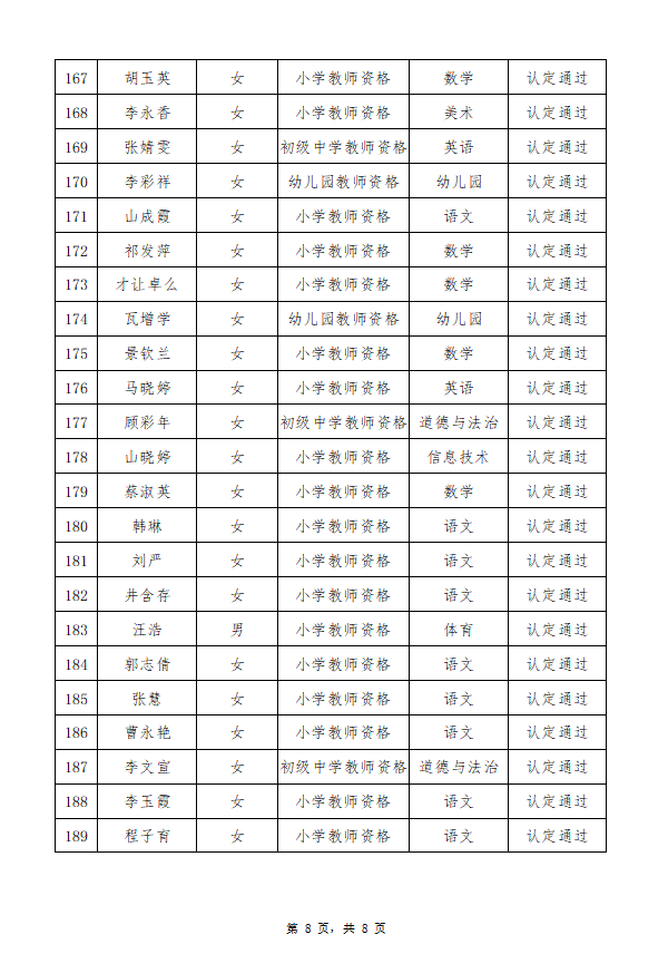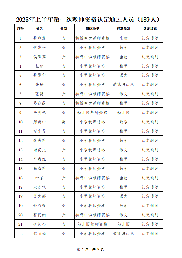 西宁市湟中区教育局2025年上半年第一次教师资格认定结果公示